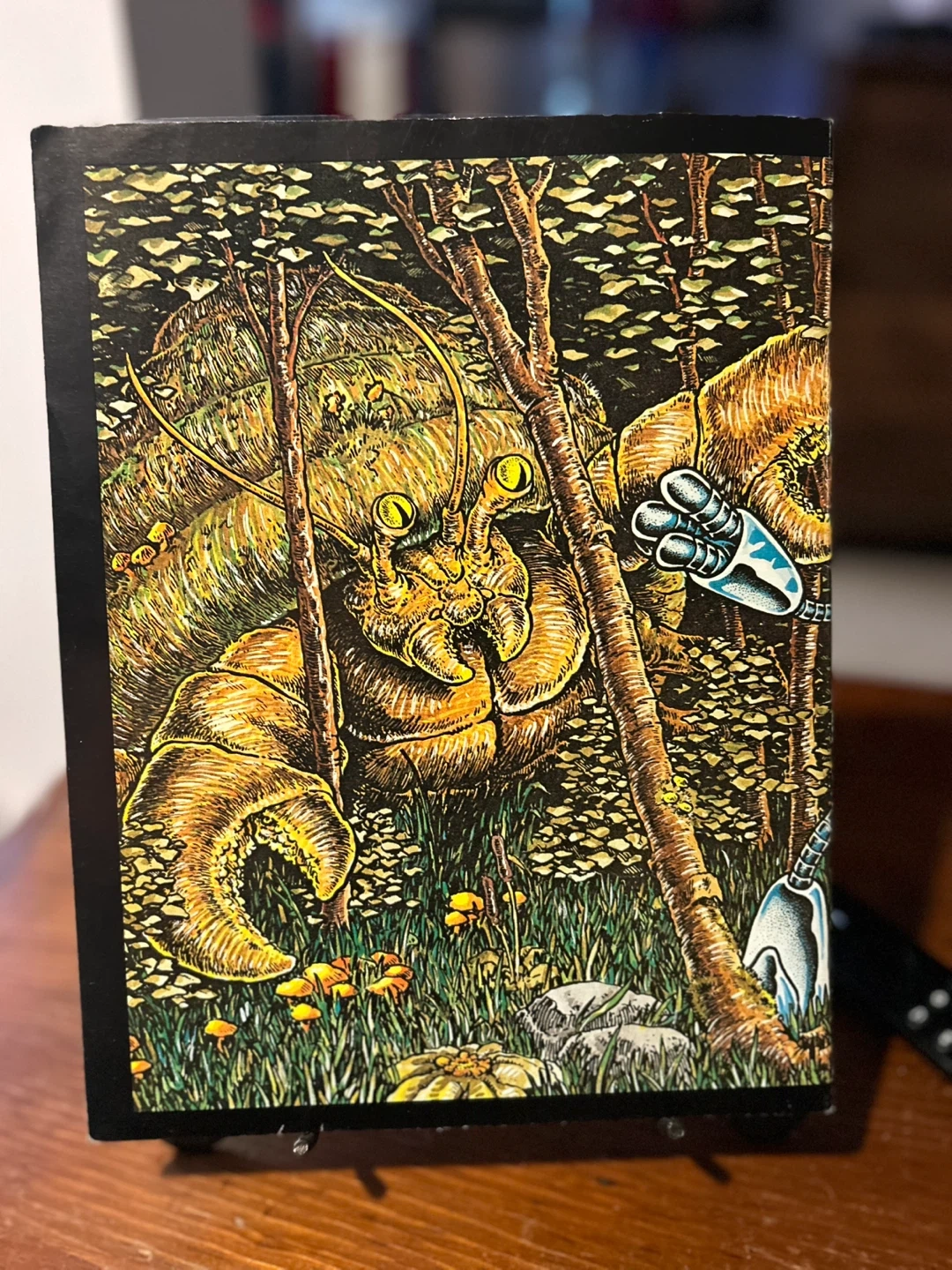 This is Fugitoid #2 from Mirage Studios, copyrighted in 1985. It features the character Fugitoid and the Teenage Mutant Ninja Turtles. The comic is in black and white. This edition is dedicated to Russ Manning. It was printed in the USA.
