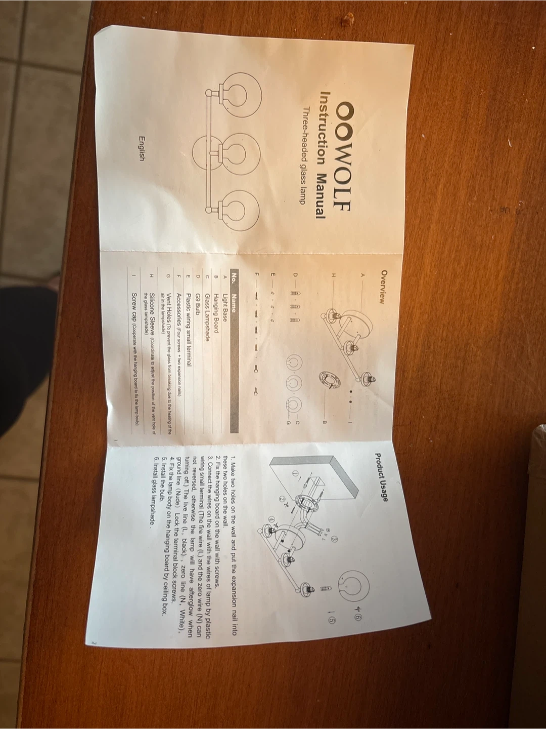Selling an OOWOLF three-headed glass lamp! It comes with the instruction manual and all the necessary components for installation. Perfect for adding a touch of modern style to any room