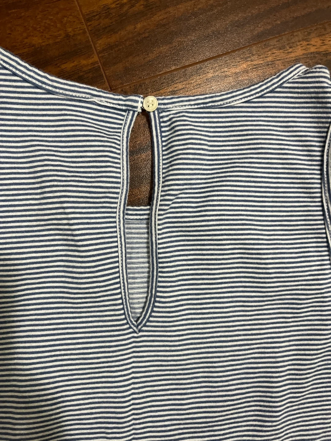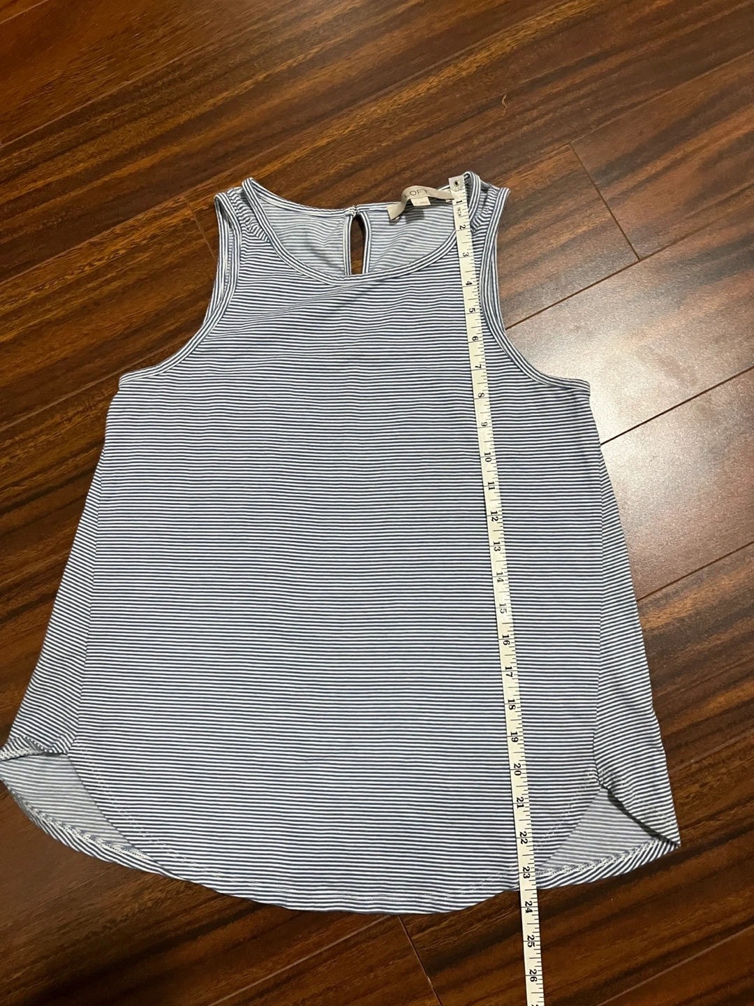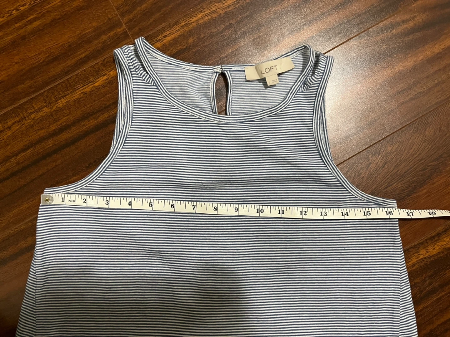 Loft striped tank in excellent condition. Soft modal blend with double‑strap detail and keyhole button back. True to size.