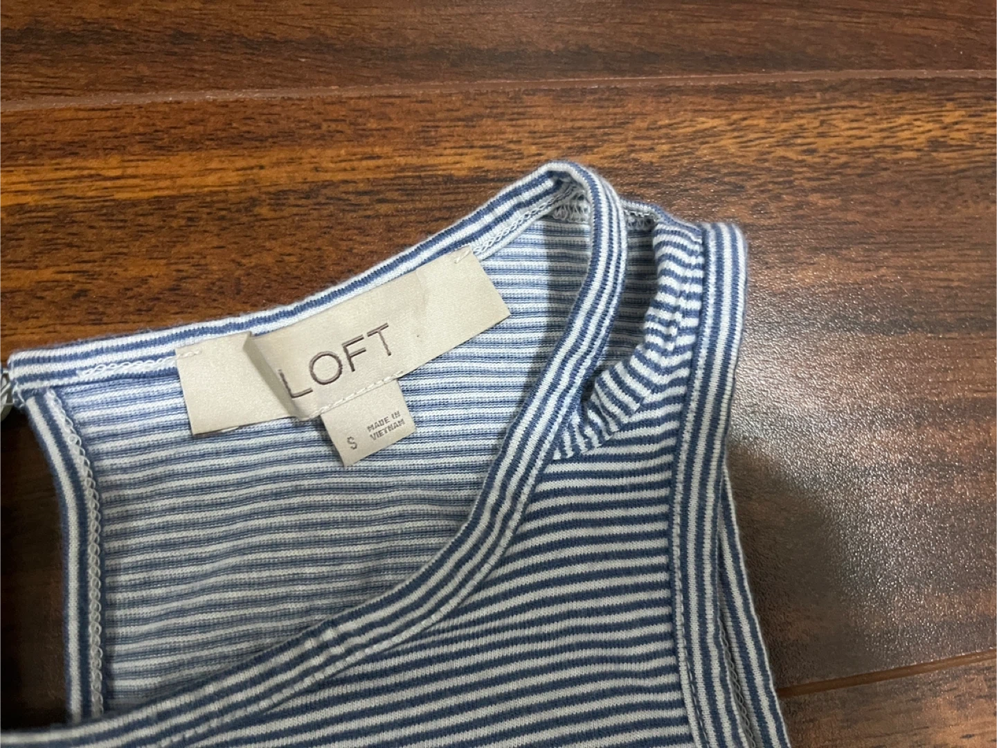Loft women’s small tank top, striped blue white, modal