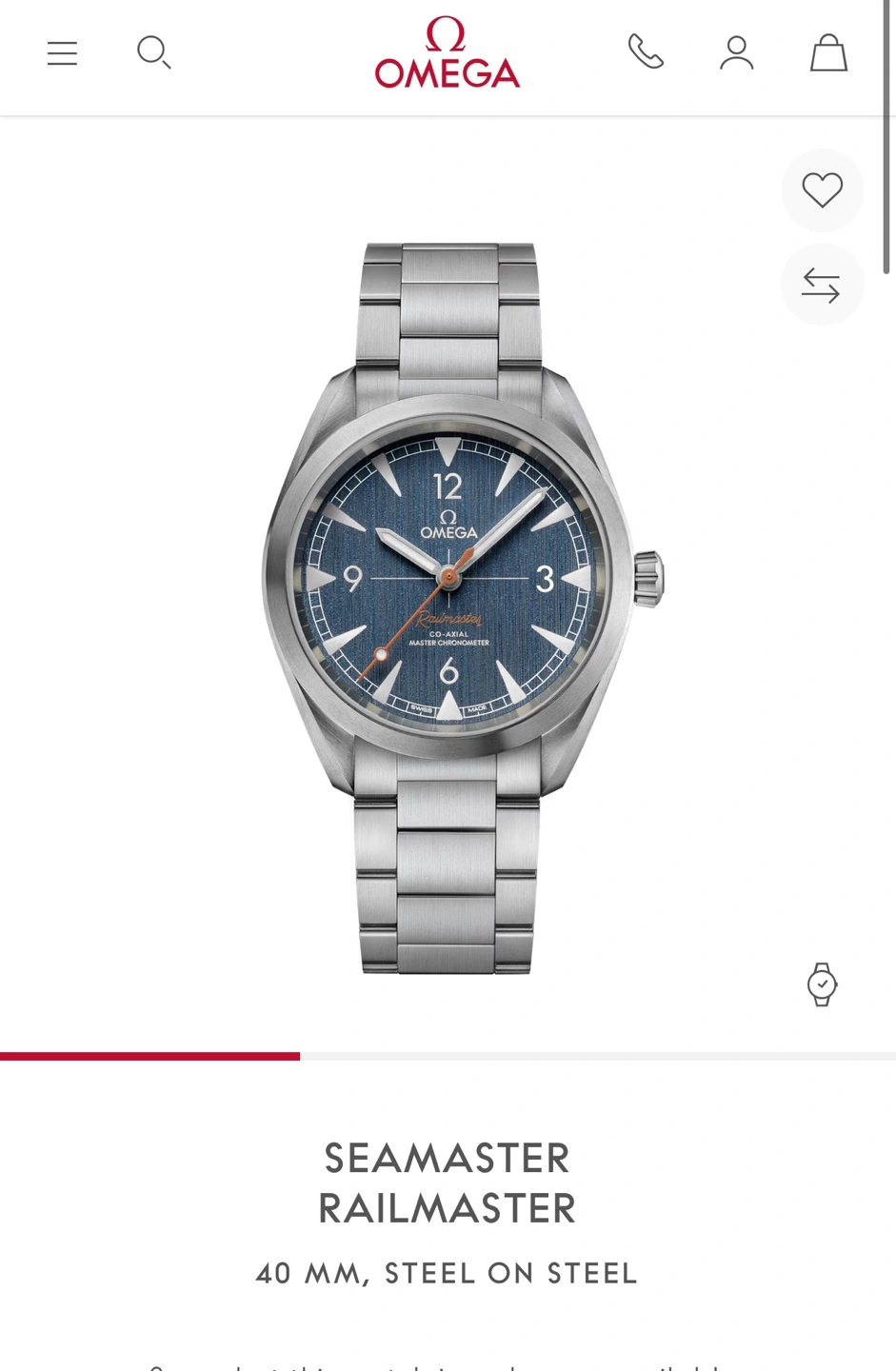 220.10.40.20.03.001 Omega Railmaster Blue Steel Chronometer Co Axial Men's Watch