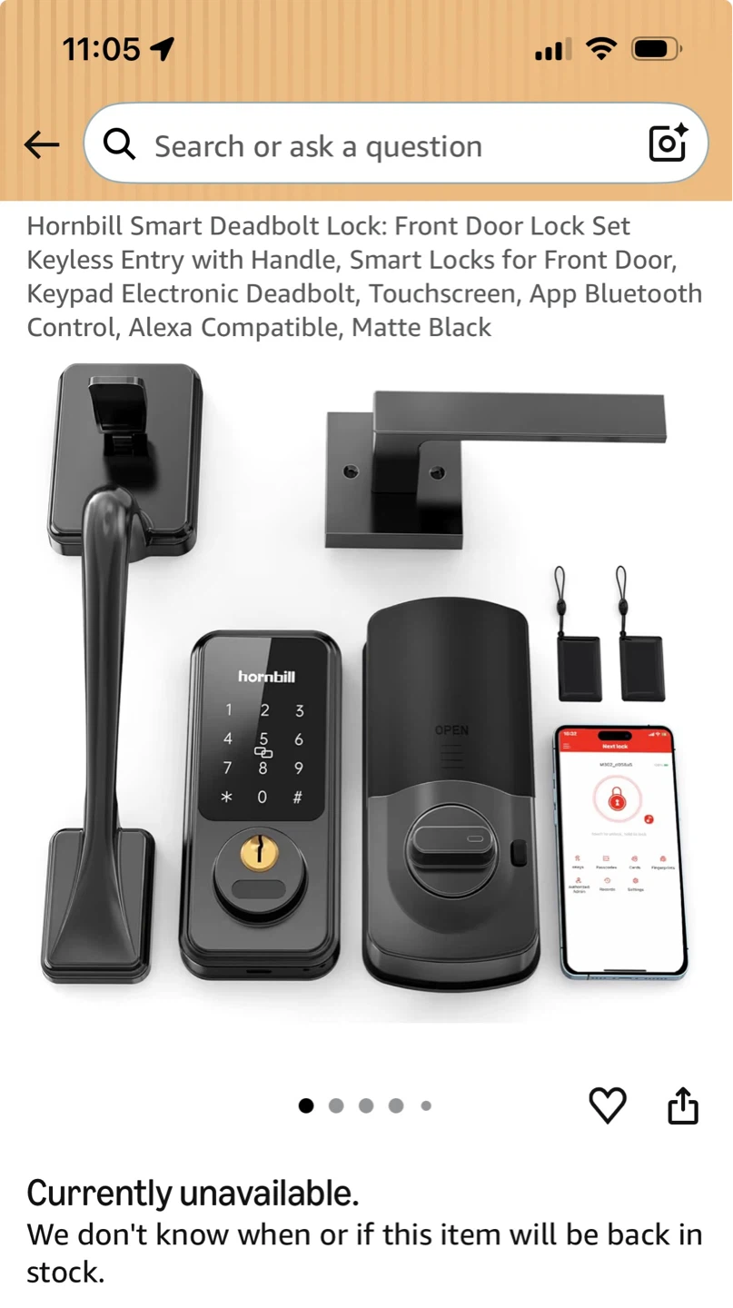 Brand New Hornbill Smart Deadbolt Lock w Handle Set