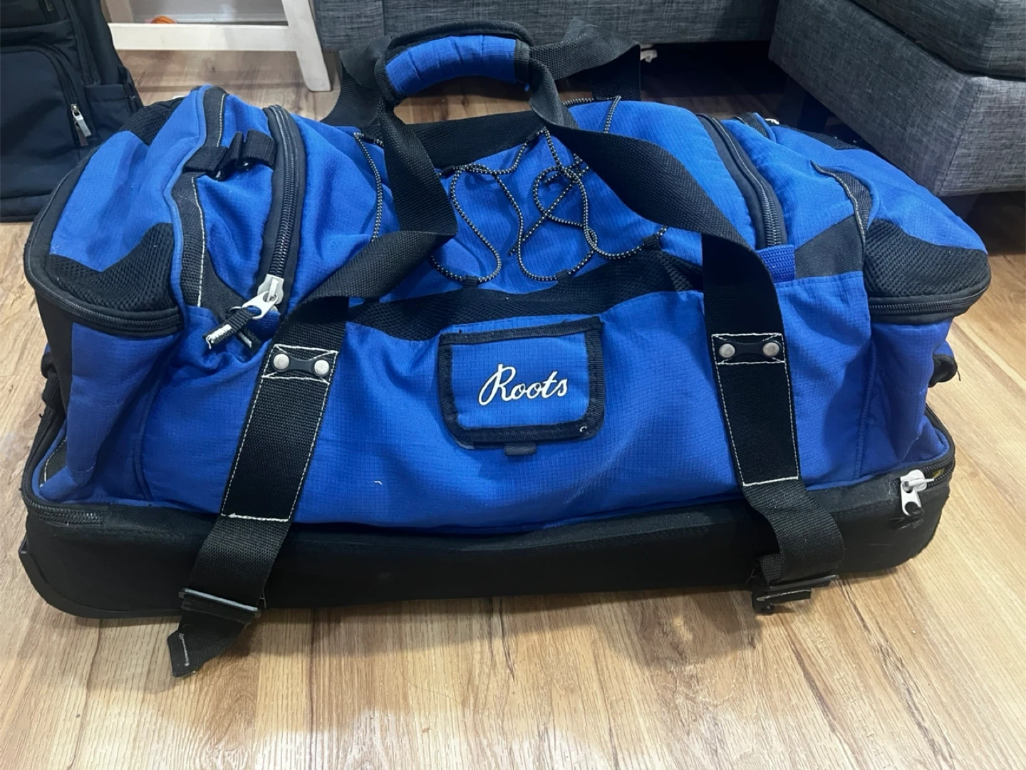 Features include wrapped grab handles, add-a-bag trolley strap, zippered front and side pockets, adjustable padded shoulder strap, large spacious compartment, keeps clothes wrinkle-free, snap tab to secure hanger, and side organization pockets.