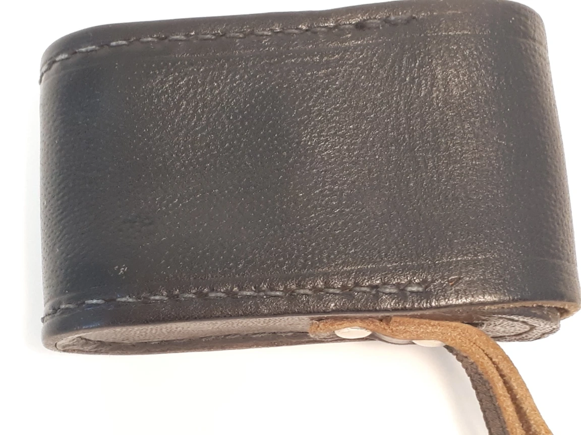 Selling a black genuine leather pouch with snap closure. Used to store and carry opera binoculars that broke a while ago. It is in good used condition. Length 10 cm. With 5.5 cm Depth 3.5 cm Very sturdy.
