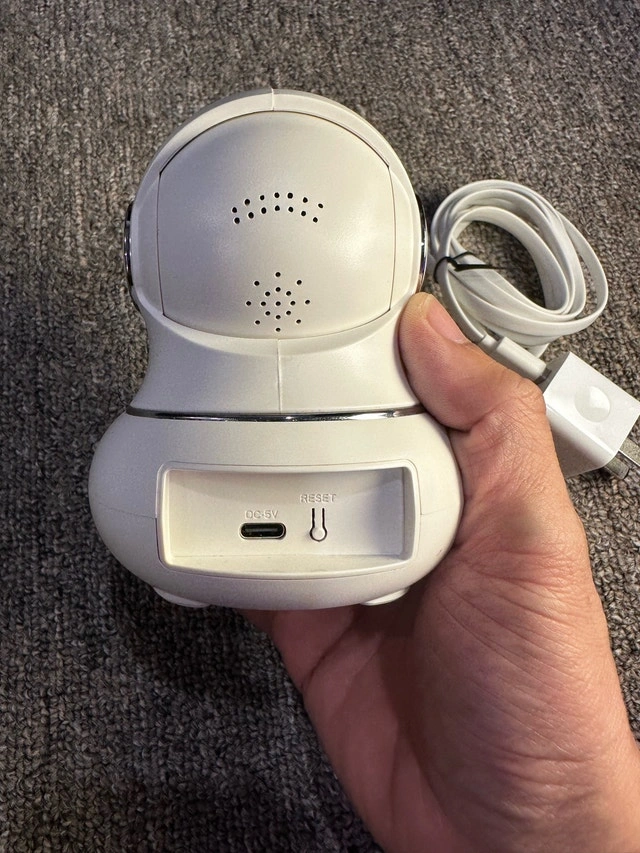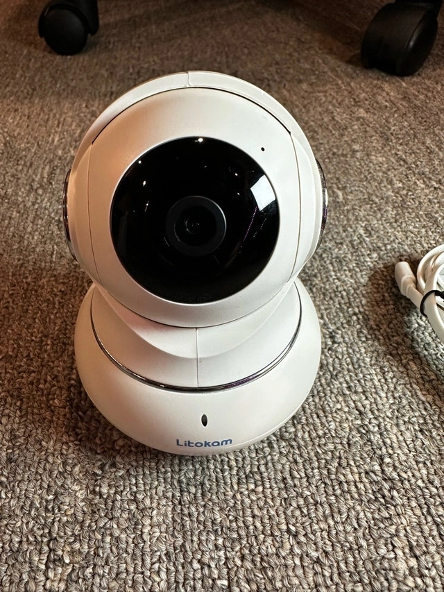Keep an eye on things with this Litokam camera! This indoor security camera features remote pan and tilt, two-way audio, and night vision, perfect for home monitoring. Features include: Remote Pan and Tilt, Two-Way Audio, Night Vision, Motion Detection, SD Card Slot for Local Storage (SD card not included). It's in good condition and ready to use. Selling for $30.