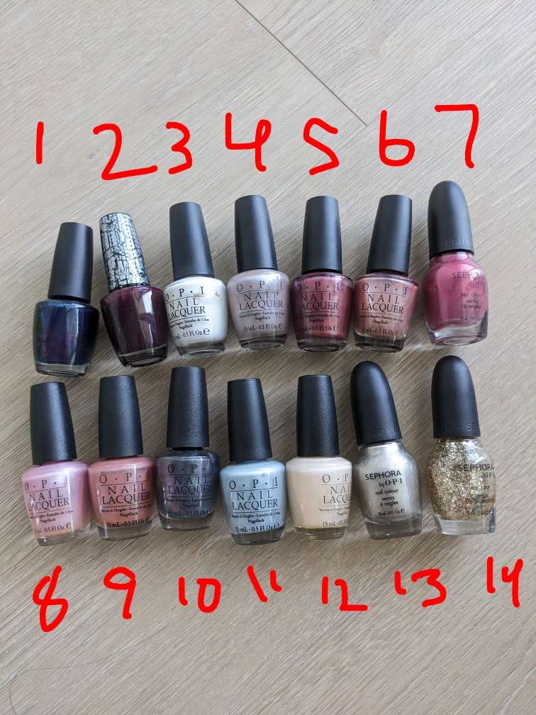 Selling a bundle of OPI and Sephora nail polishes! Each bottle contains 15 mL (0.5 fl oz). Great colours to add to your collection $4 each, $40 for all Let me know if you want to see a swatch. Meet at Gilmore station. Cash only