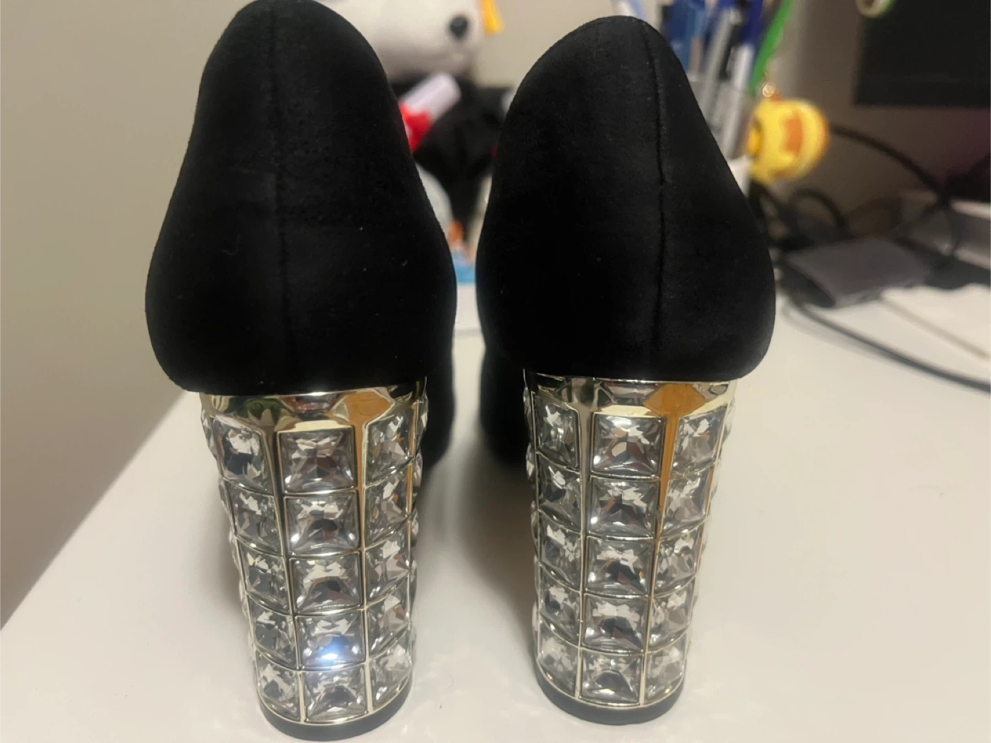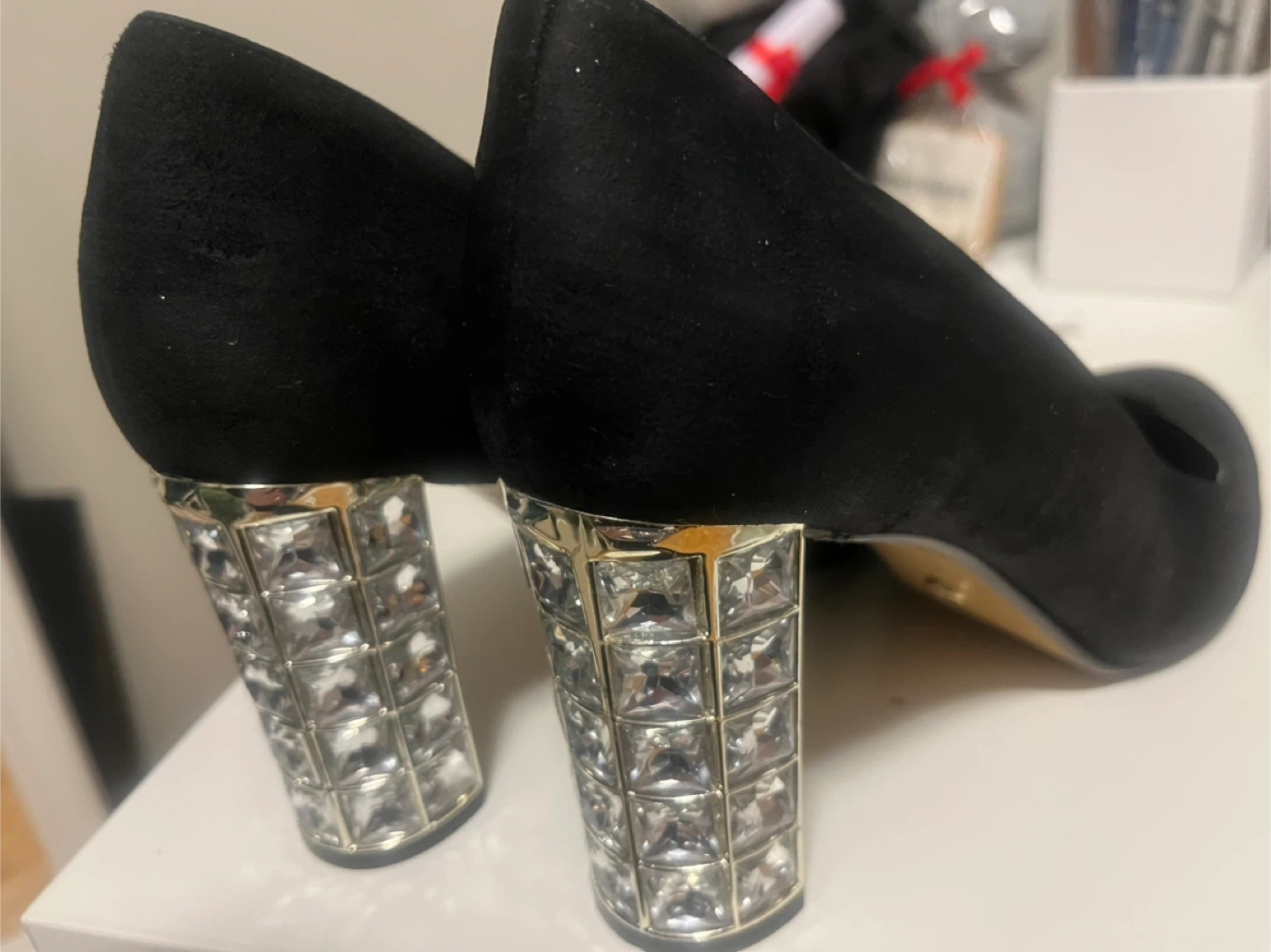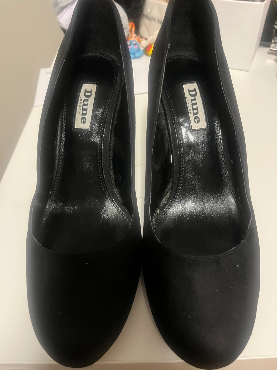 Selling a pair of black heels from Dune London. These heels have a unique design with a jeweled heel, adding a touch of sparkle to any outfit