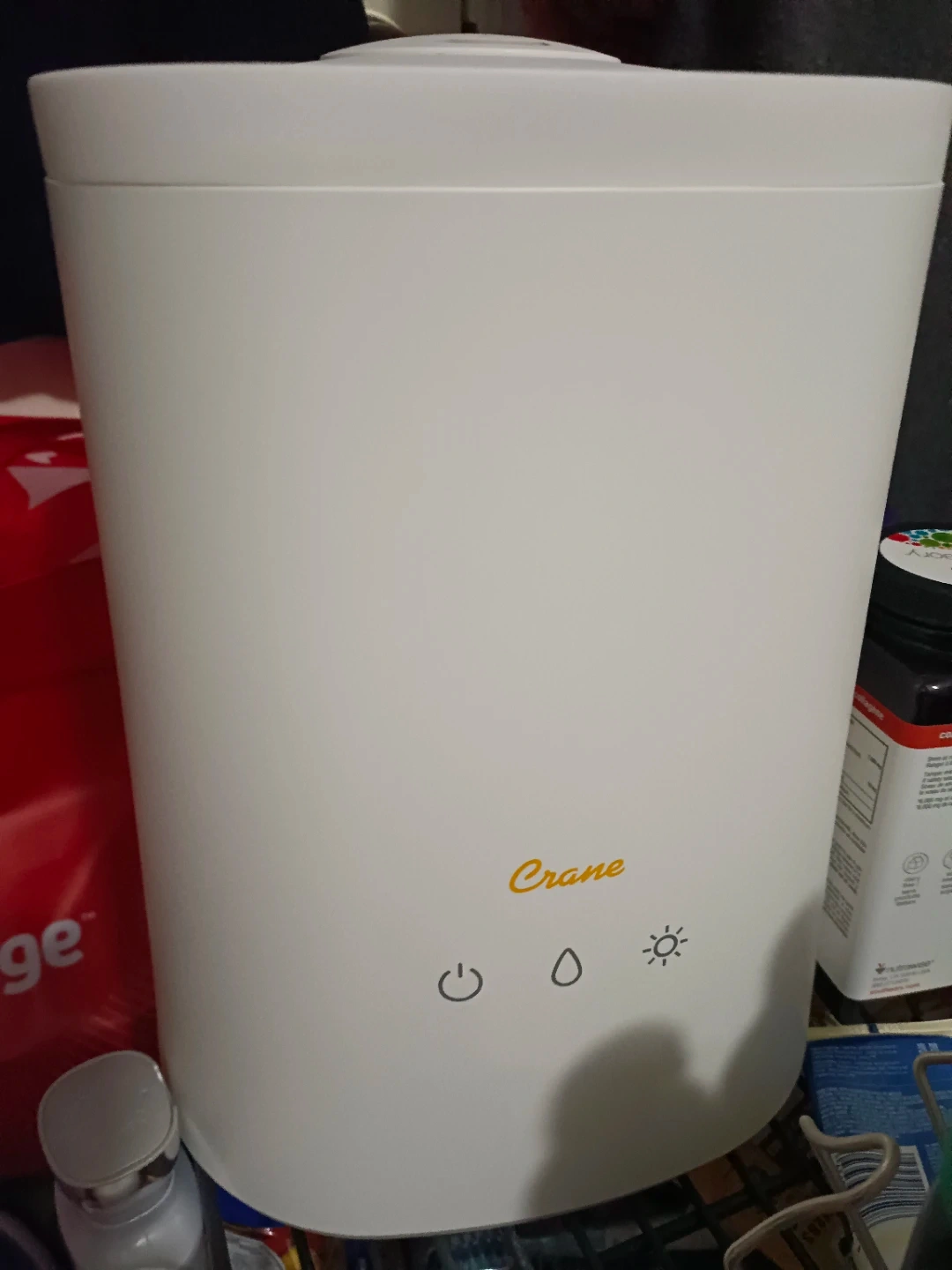 This is a white Crane humidifier. It's a portable and easy-to-use appliance. Great for any room in the house!