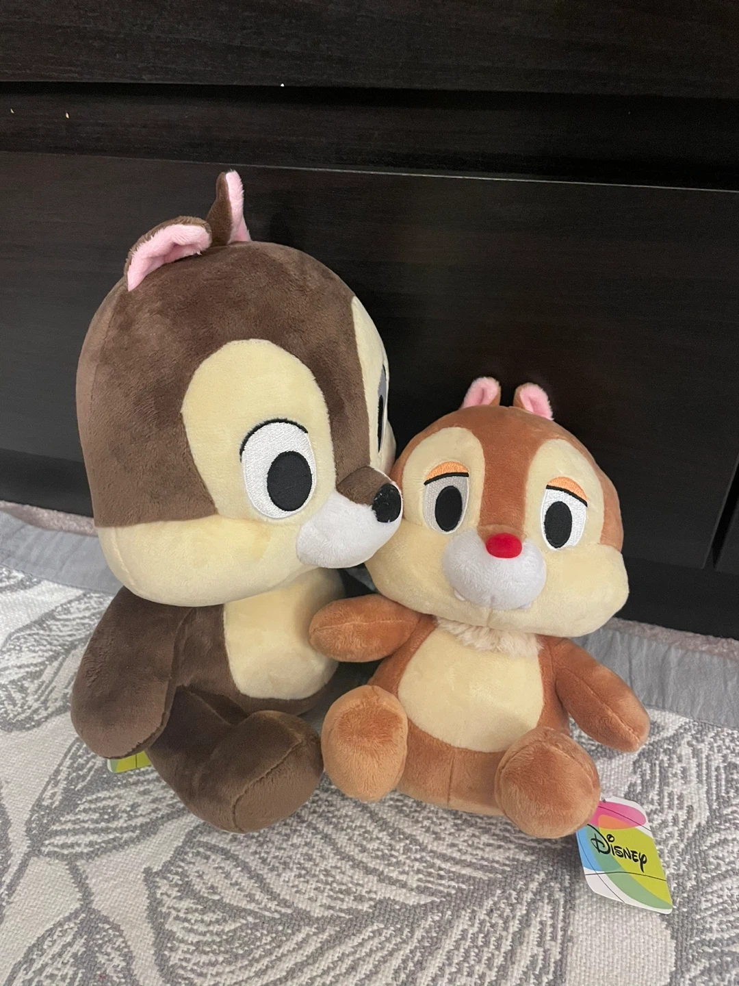 A set of two plush toys featuring the beloved Disney characters Chip and Dale. These soft stuffed animals are perfect for any Disney fan's collection or for cuddling. Made with durable material for lasting fun!