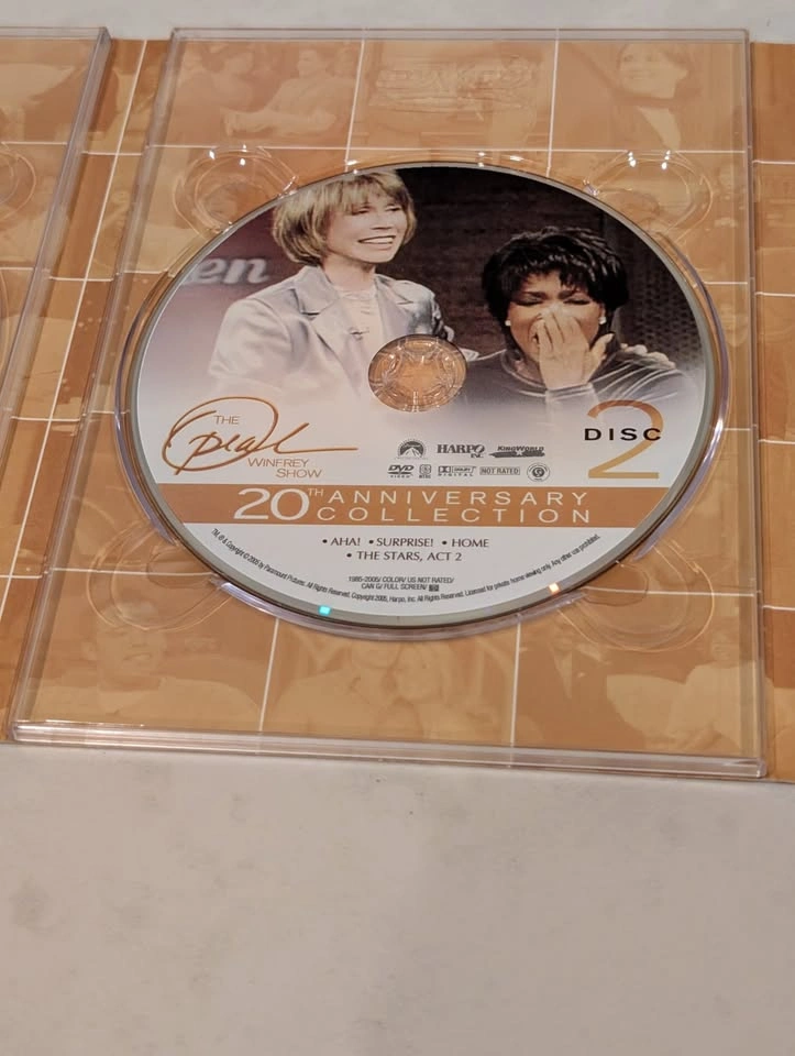 An unprecedented six-disc collection celebrating the 20th Anniversary of THE OPRAH WINFREY SHOW one-on-one with Oprah Winfrey herself. See exclusive never-before-seen footage, never-before-heard thoughts and personal revelations, as Oprah takes a candid, open and intimate look back at all the most memorable moments of 20 years of history-making television. Get the inside story on Oprah's all-time favorite guests, surprises, celebrities and the people that have touched Oprah's heart forever. Share Oprah's personal perspective on the stories that made headlines, the interviews she'll never forget and more. Plus, go on a personal tour of Oprah's home, watch never-before-seen footage from the beginning years of THE OPRAH WINFREY SHOW, and take an exclusive look behind the scenes of A DAY IN THE LIFE OF THE OPRAH WINFREY SHOW. Twenty extraordinary years...from Oprah to you. Oprah Winfrey will donate 100% of Harpo's profits from the sale of this DVD Collection to Oprah's Angel Network. Please note: The dvds have not been tested to see if they work