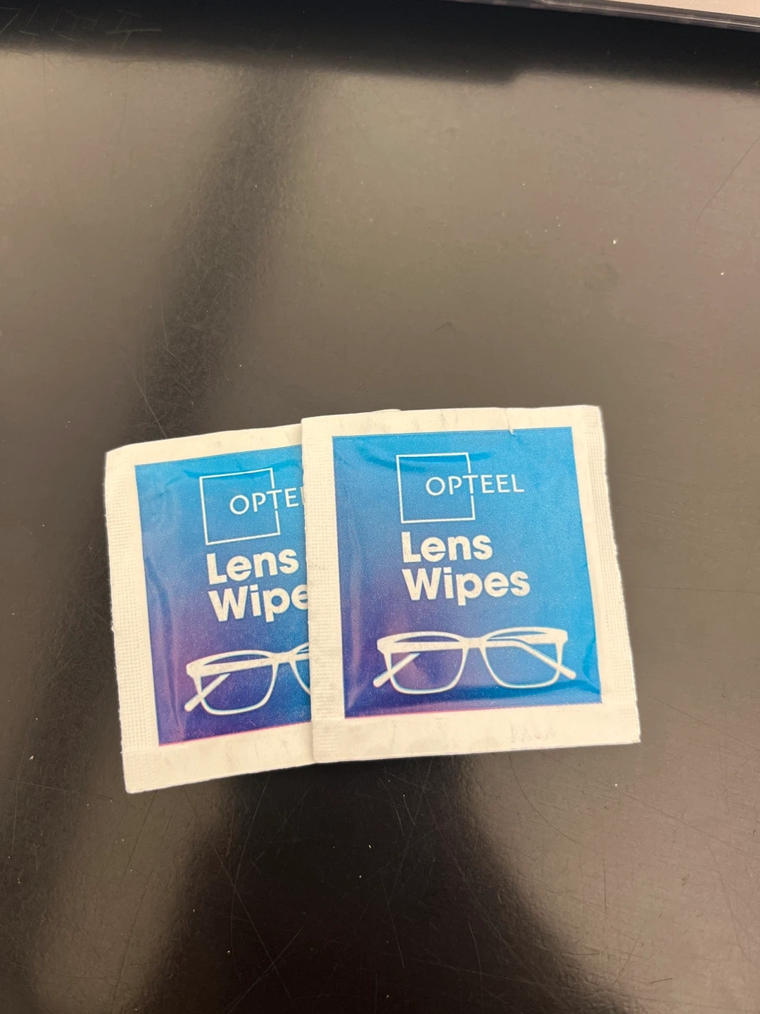 78Giving two OPTEEL lens wipes away. These are perfect for keeping your glasses or screen clean and clear on the go!