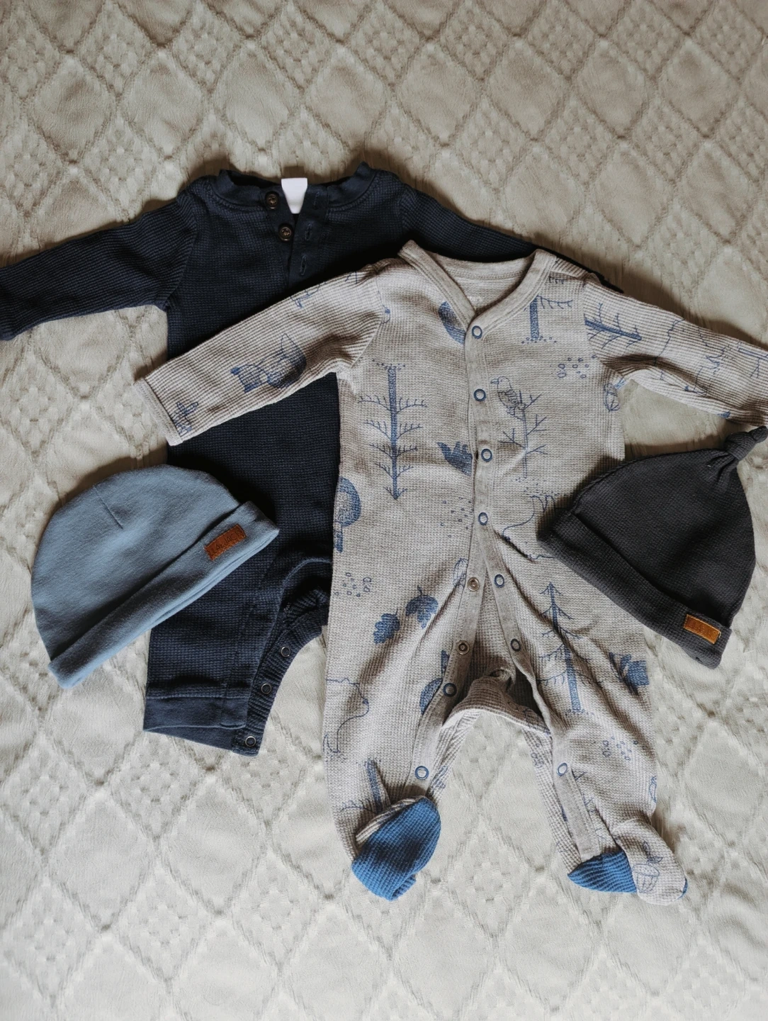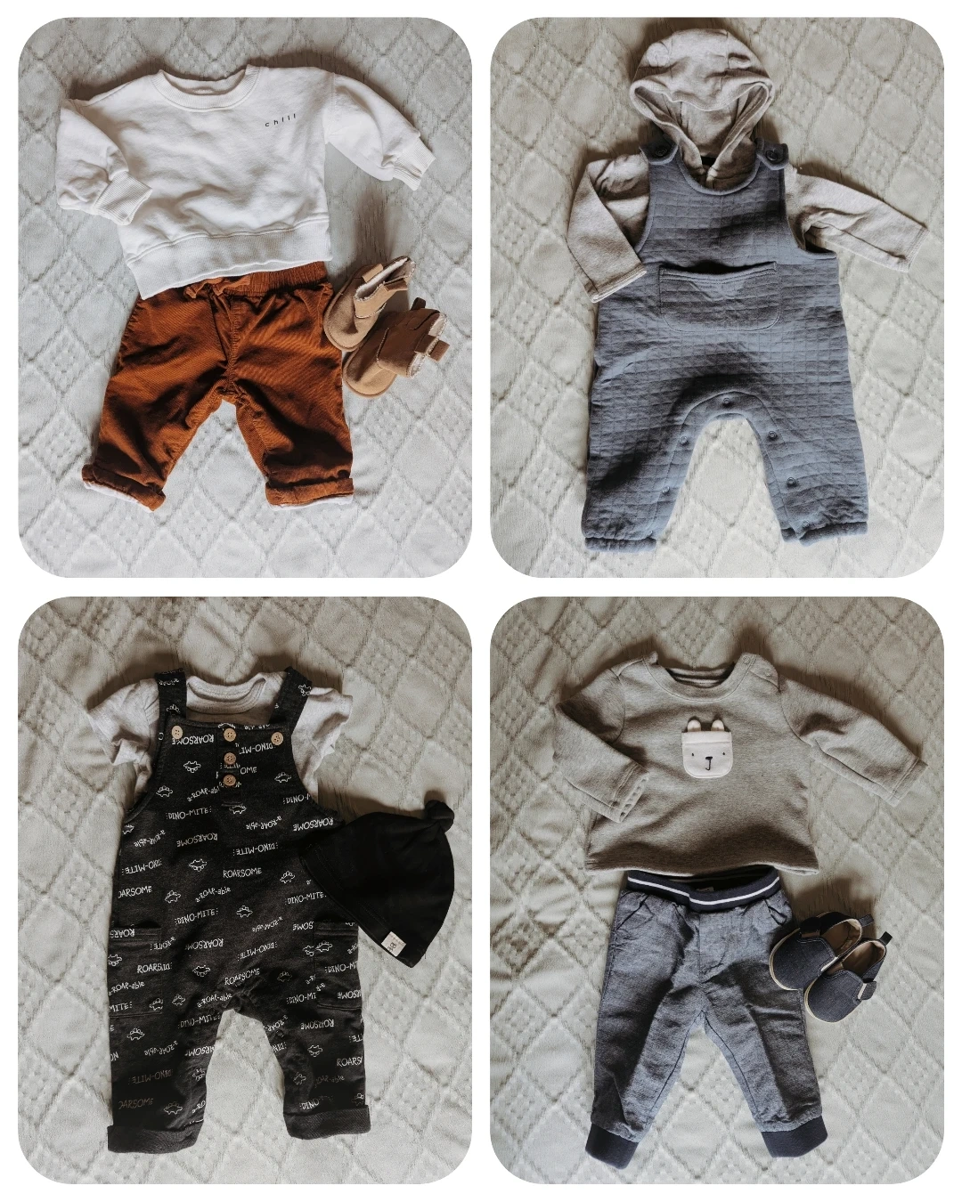 This lot contains a variety of baby clothing items including onesies, sweaters, pants, and hats. Most items appear to be for infants and toddlers. Please check individual items for specific sizing and material details. Great for building a baby's wardrobe!