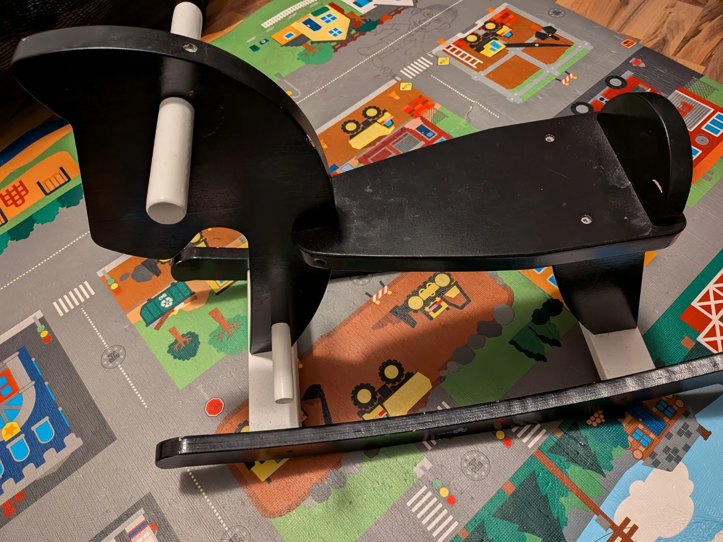 This black wooden rocking horse is a classic toy for little ones. It's made of sturdy wood with smooth, rounded edges. This rocking horse provides hours of imaginative play.