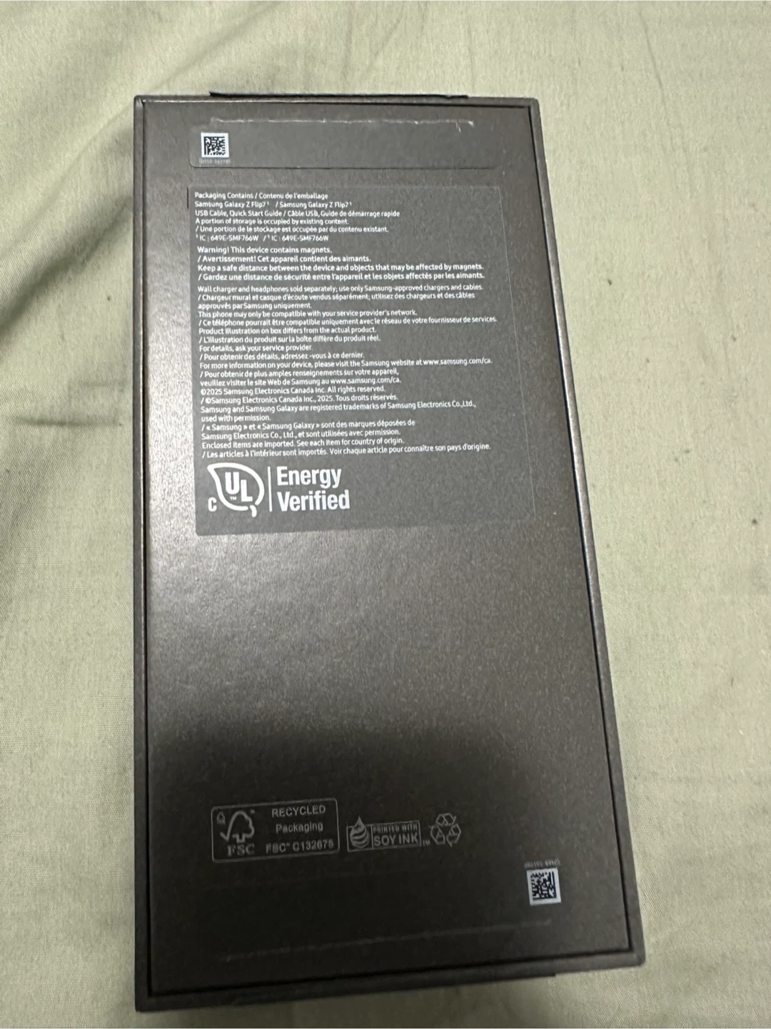 Samsung Galaxy Z Flip 7 smartphone in black. It runs on Android and features a folding display. Original packaging is included. It is a Brand New Phone. Never ever been used. Open box but not even single time used Phone.