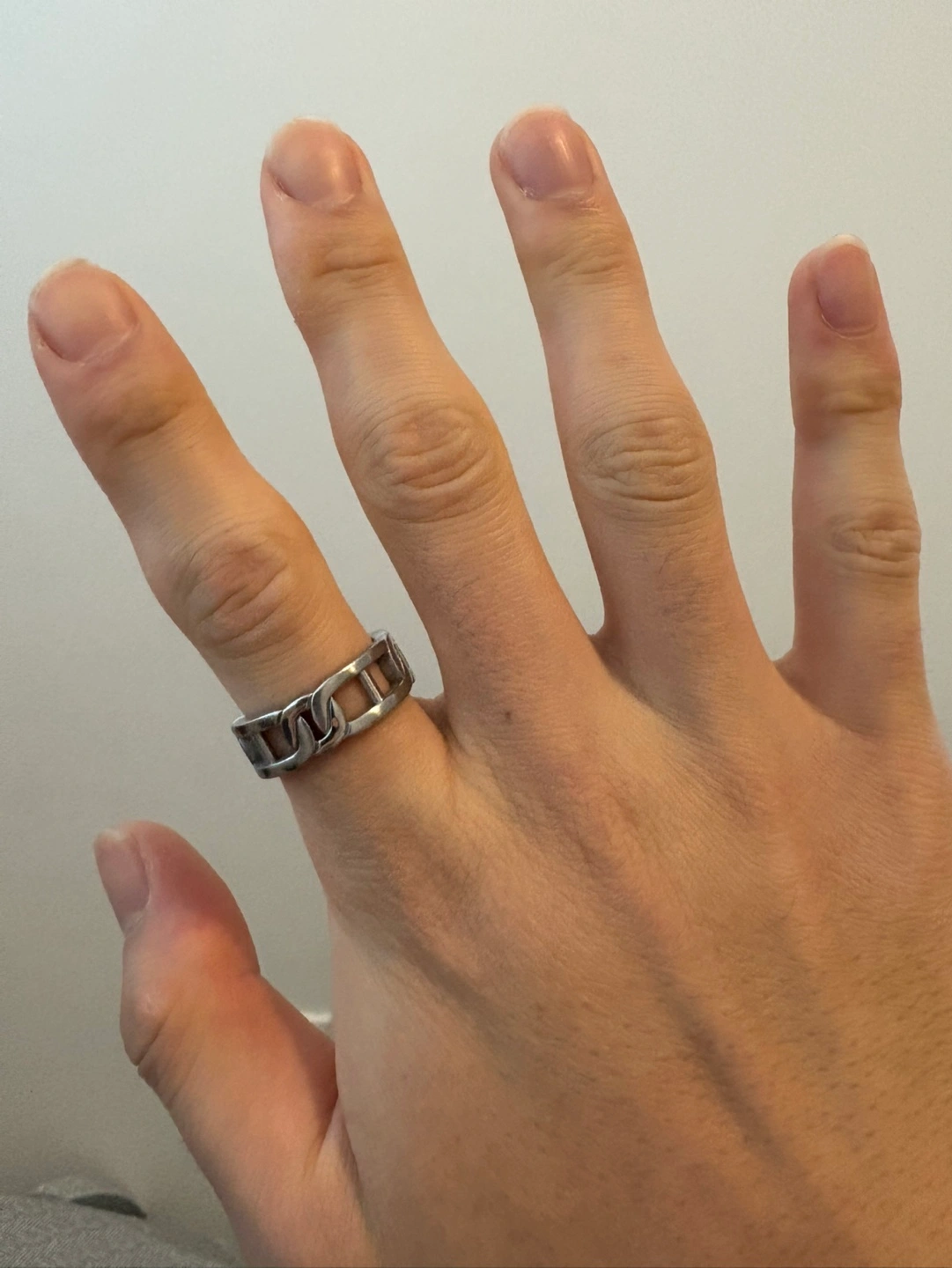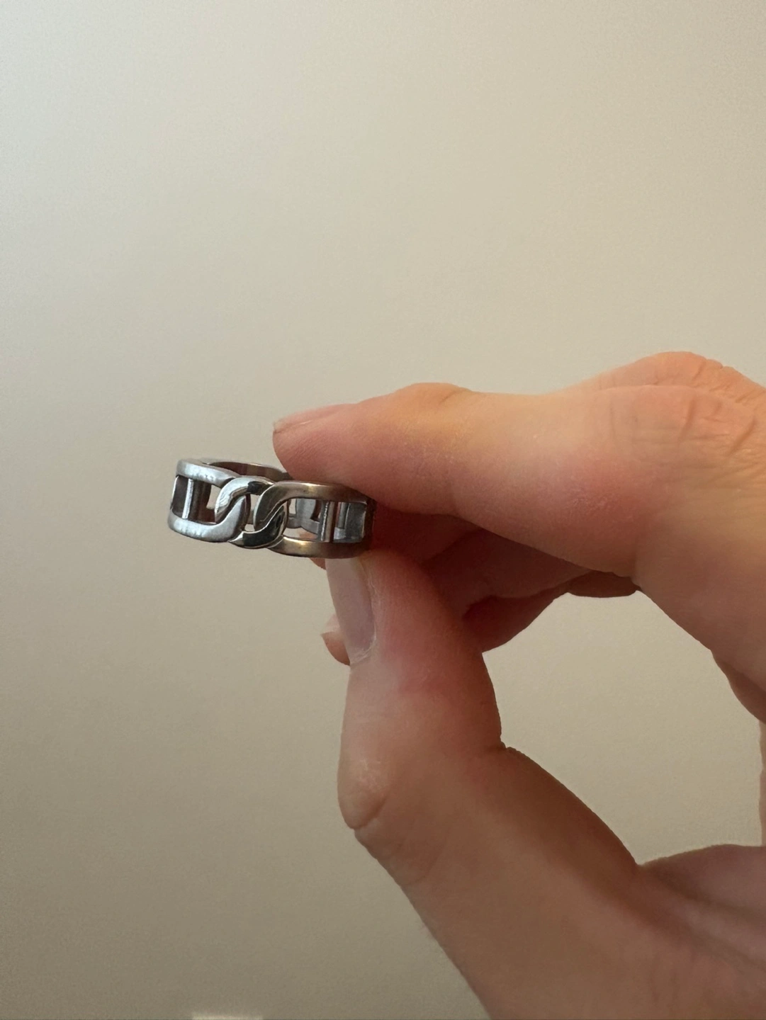 Unique silver chain link design. Simple and stylish. Great everyday wear. Looks great stacked or alone.