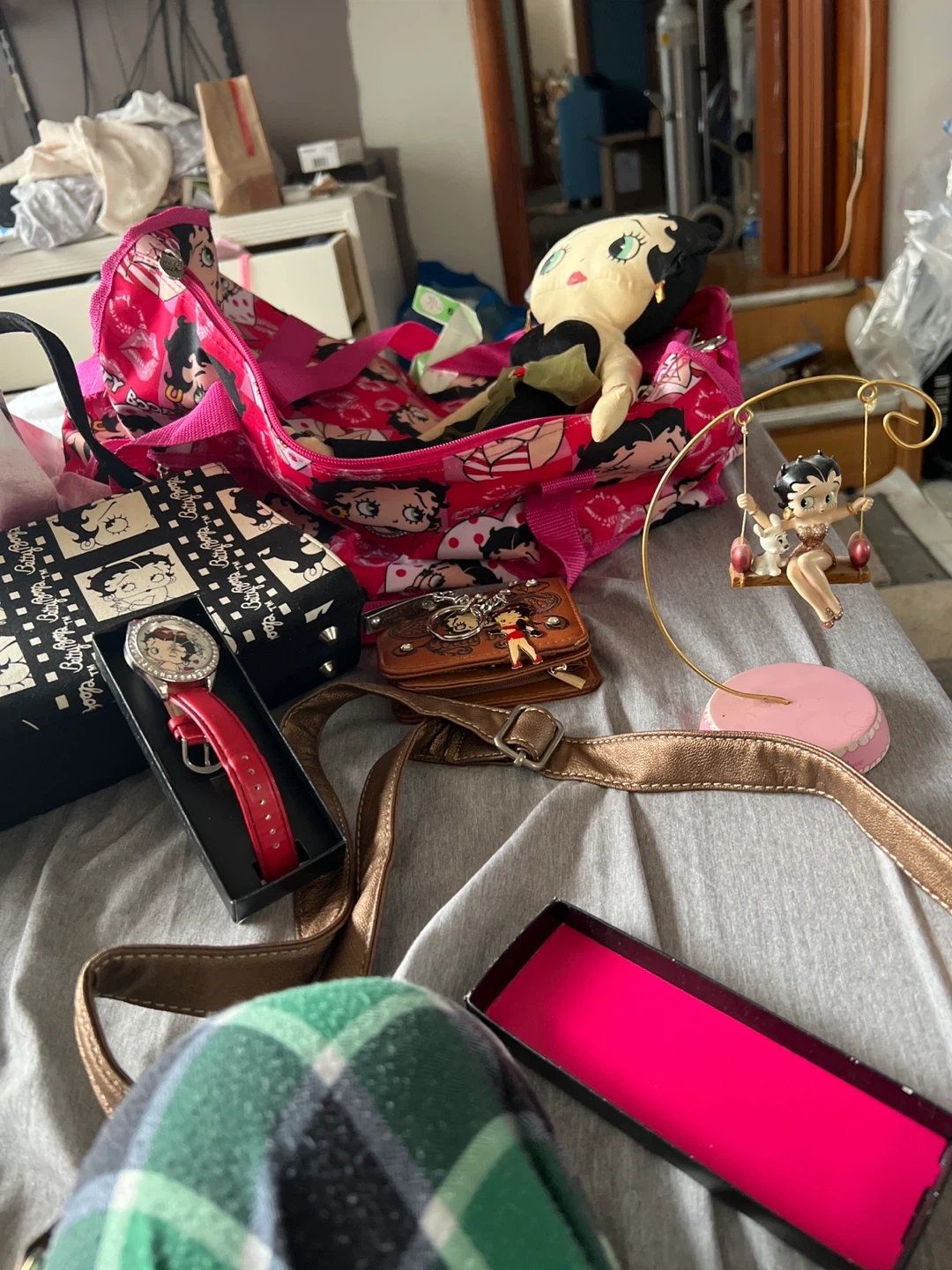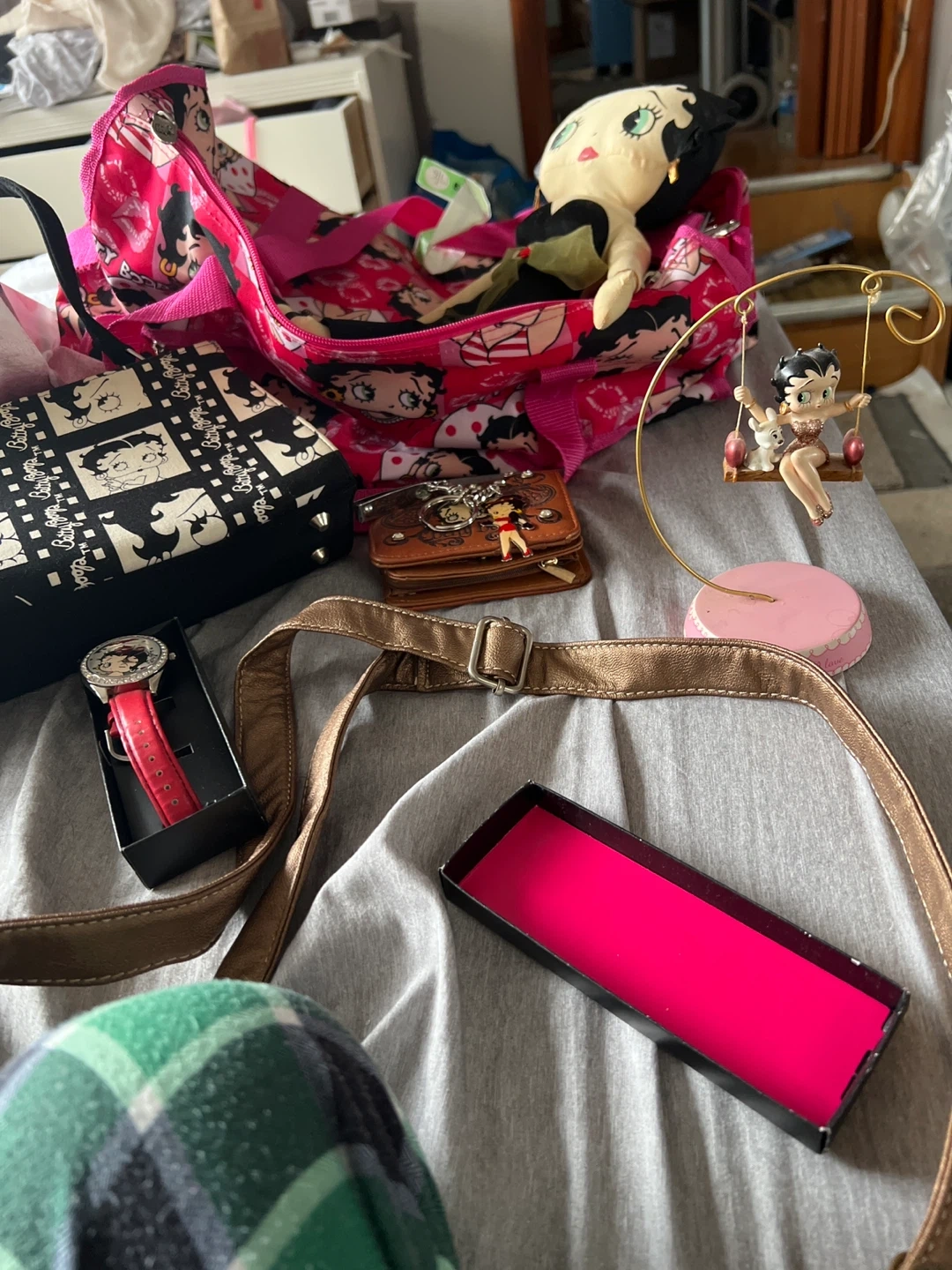 A collection of Betty Boop items up for grabs! Includes a bag, wallet, watch, and a few other cute collectibles. Perfect for any Betty Boop fan!