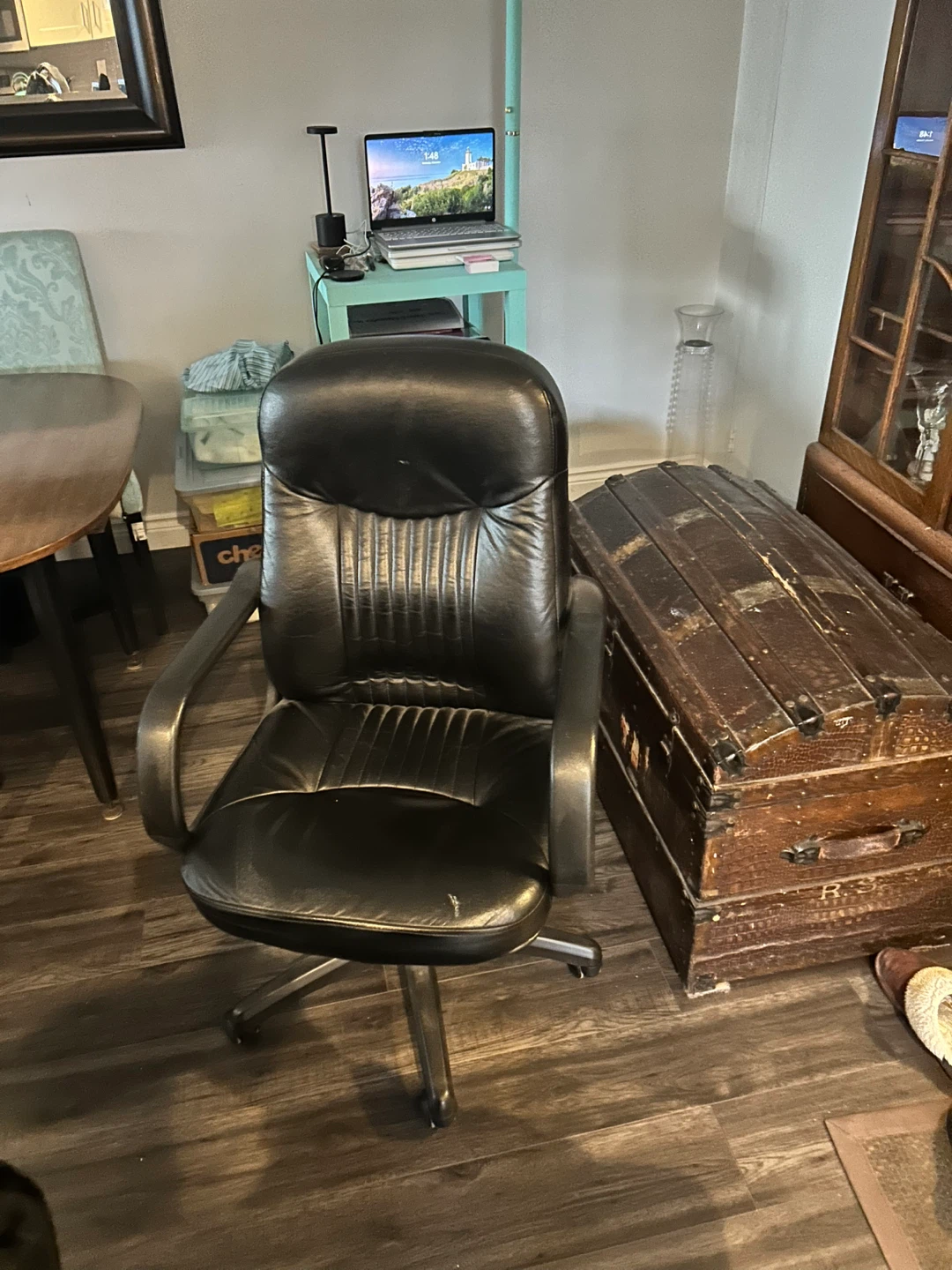 Includes executive swivel chair with wheels
