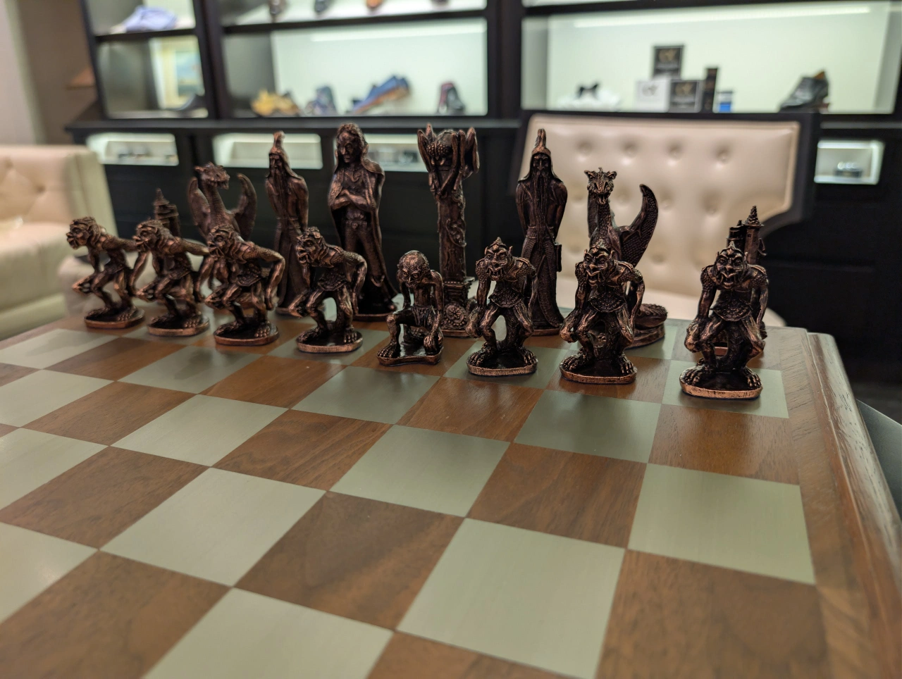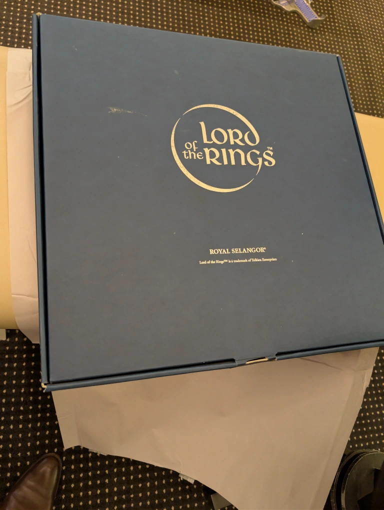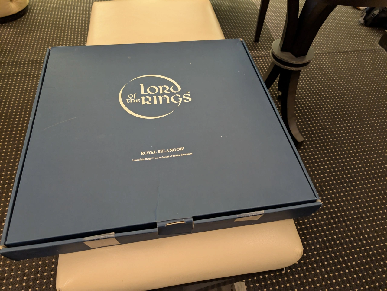 Selling a Lord of the Rings chess set by Royal Selangor. It's a Mastermark Pewter edition and comes with the original box. A beautiful and unique item for any fan!