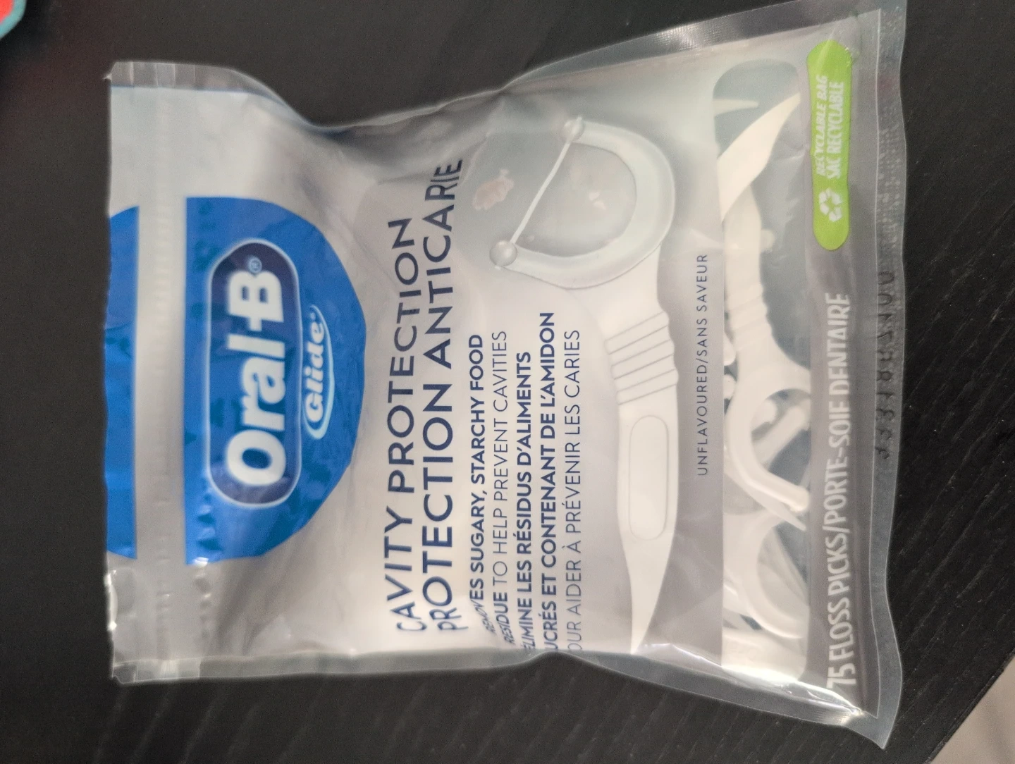 1000+Selling a pack of Oral-B Glide Cavity Protection floss picks. Each pack contains 75 floss picks to help remove sugary, starchy food residue to help prevent cavities. Designed to stimulate gums to promote gum health. The floss is designed to clean effectively and comfortably.. used around 5,6 but didn't find them that comfortable to use...