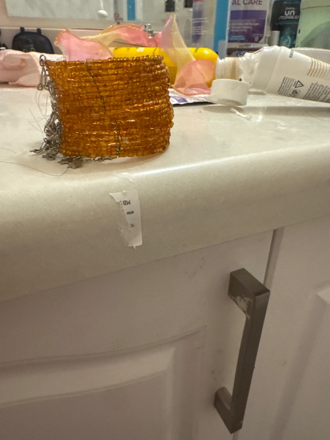 931This is a cute orange beaded bracelet with silver chain detailing! It's in good condition and would be a great addition to your jewelry collection