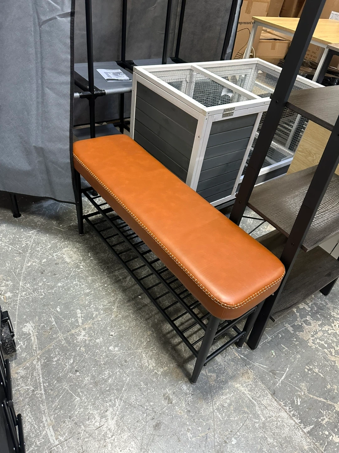 Selling a stylish orange bench with a sleek black metal frame! This bench would be perfect for an entryway, living room, or even at the end of a bed. It's in great condition and ready for a new home