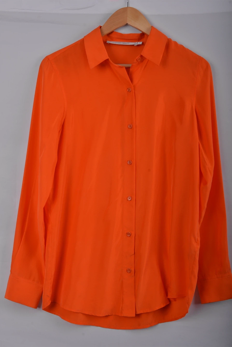 Here's a vibrant orange button-down blouse! Perfect for Halloween! Never worn