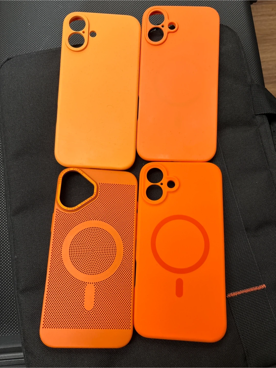 90Selling a set of four orange iPhone cases, all compatible with MagSafe. They're in great condition and ready to protect your phone in style!