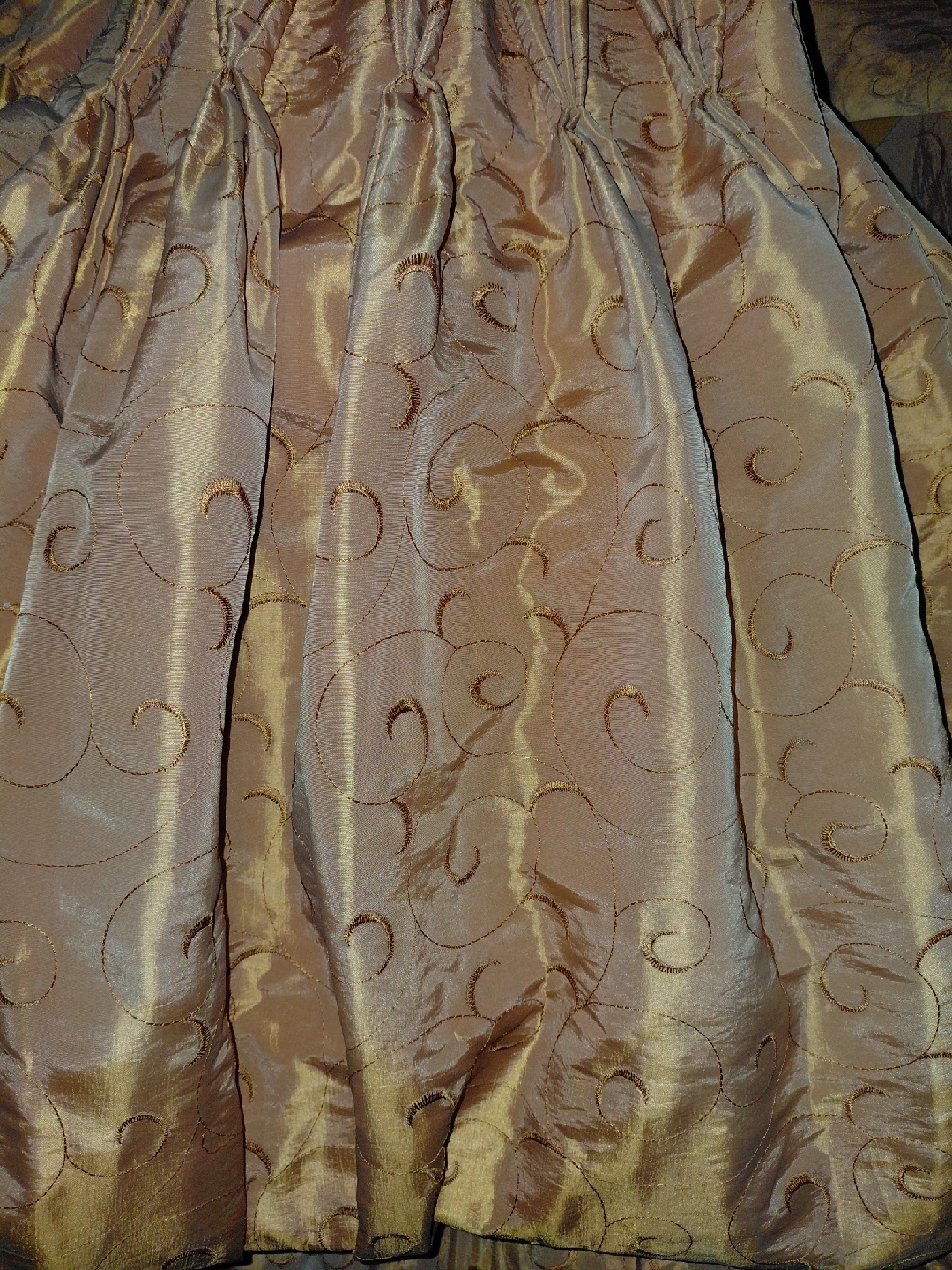 21Selling a set of orange patterned window curtains. They're in good condition and would be a lovely addition to any room. One panel 50 inches x 9ft, other 30inches by 8ft