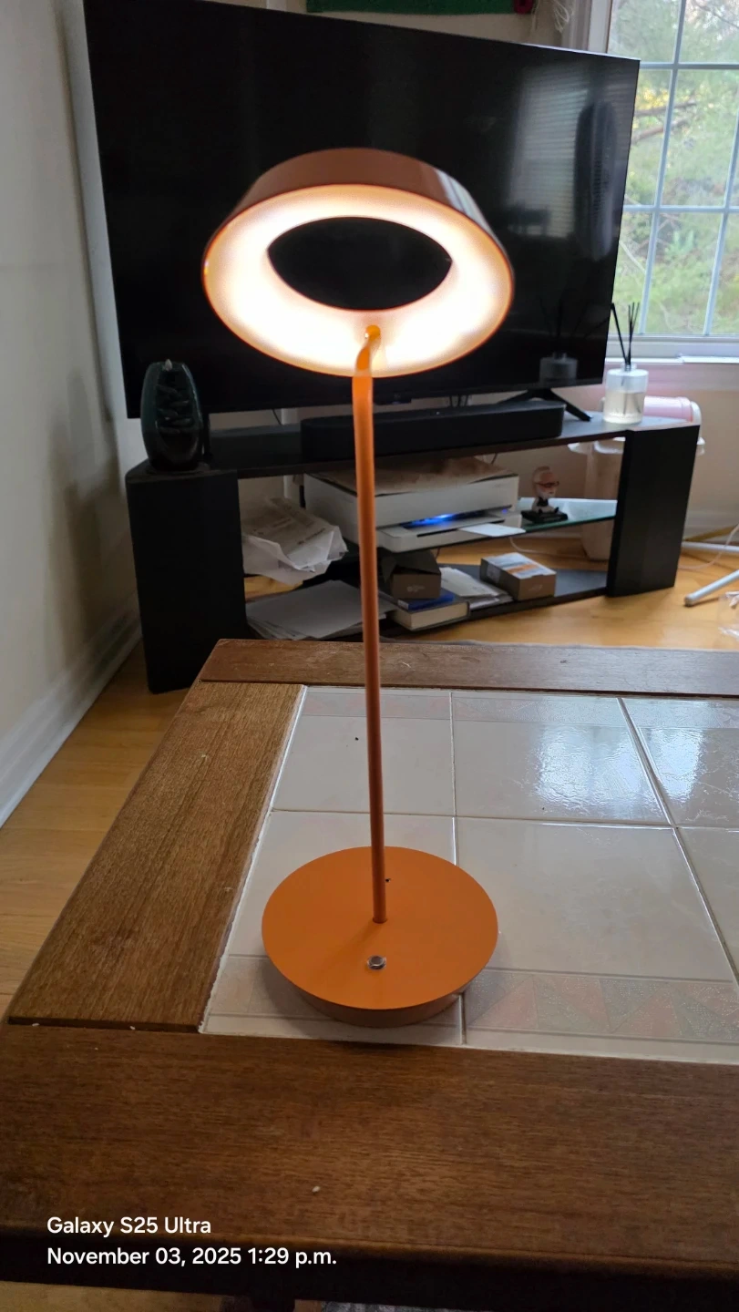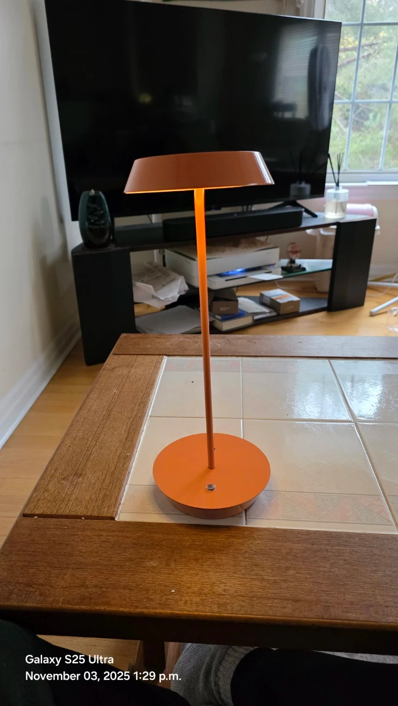 167Here's a stylish orange portable LED table lamp that would look great in any room! It's in excellent condition and ready to brighten up your space