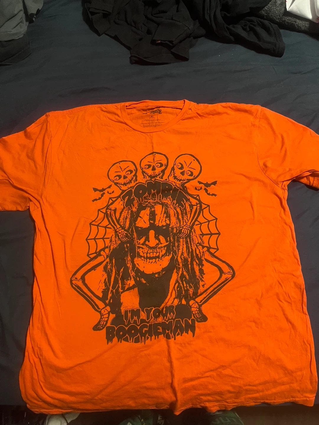 Selling an orange Rob Zombie 'I'm Your Boogieman' T-shirt. It's in great condition and is a size XL $20 obo