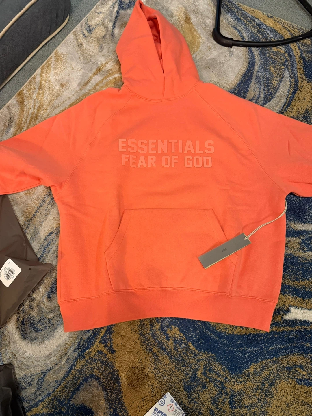 This is a Brand New Essentials fear of god hoodie With Tags . Coral color available in XS S and Medium sizes . Light Oatmeal color is also Available in medium size .