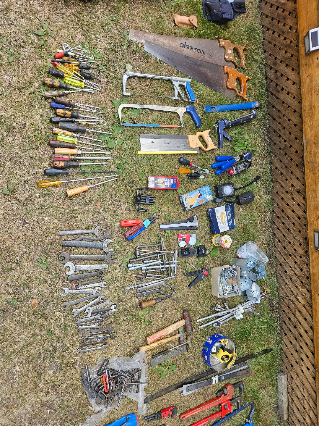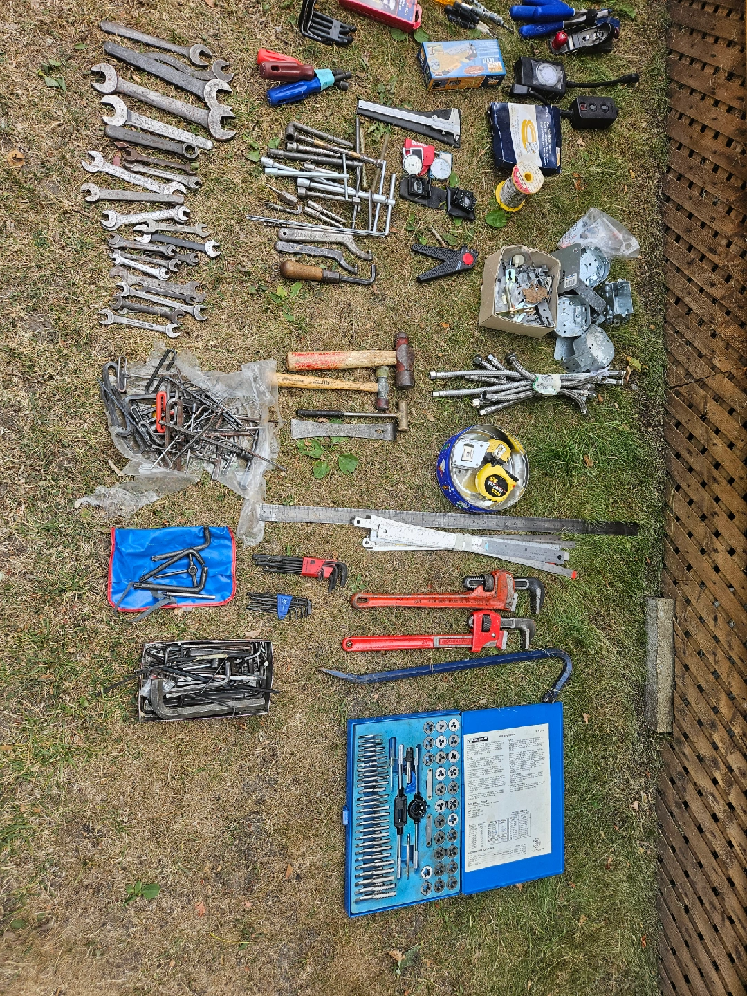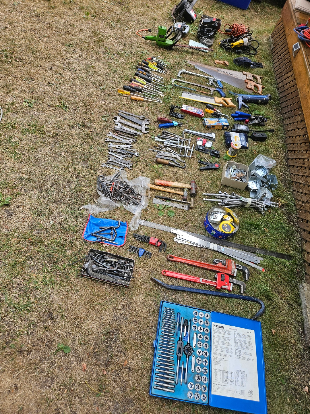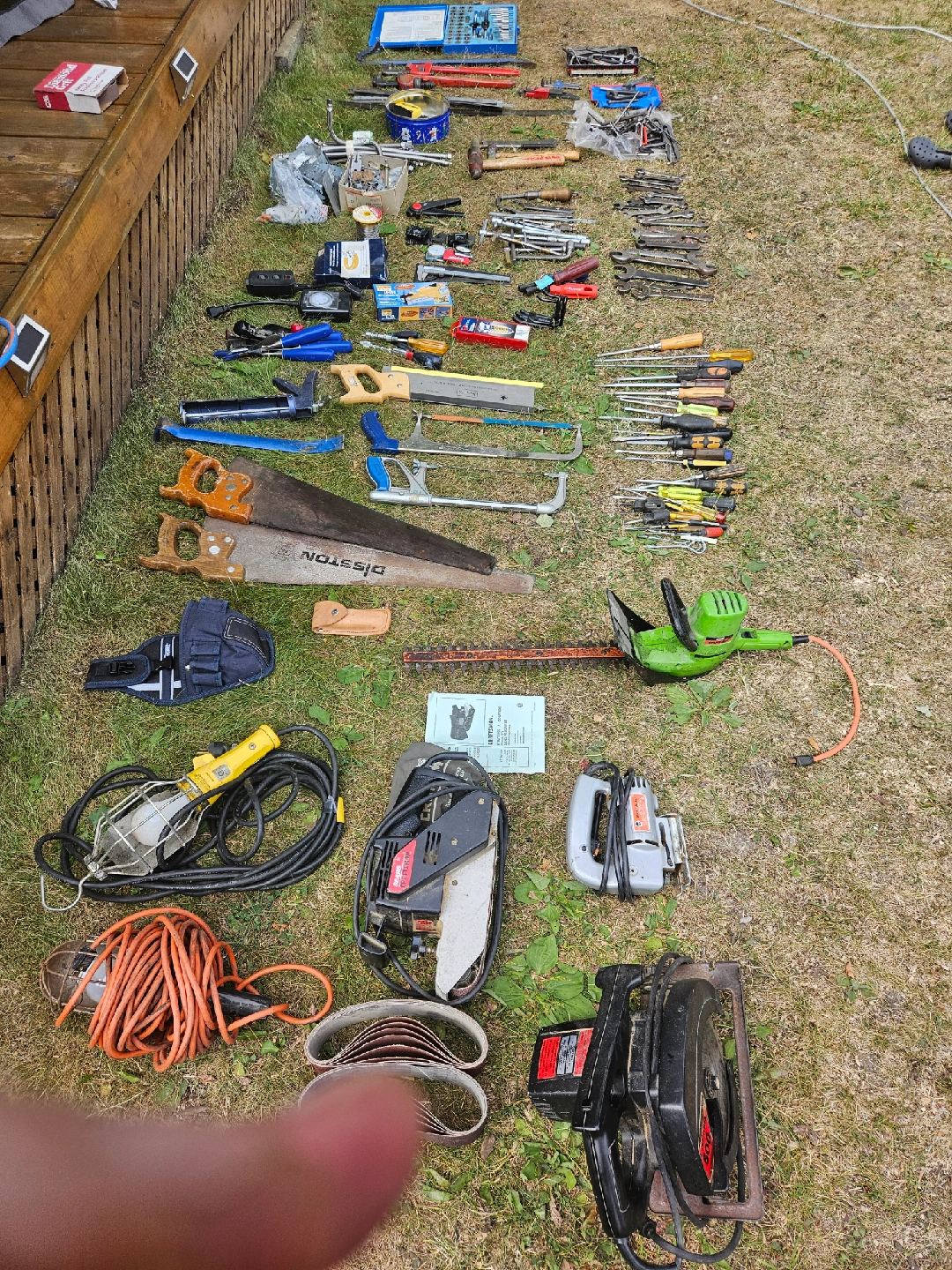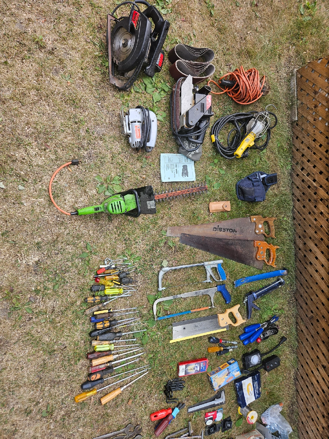 Cleaning out the trailer and have various older tools. No time for garage sale so selling as a package deal for $200. Everything in pictures is part of the package. Tap & Die set, older belt sander, skill saw, jig saw, hedge trimmer, pipe wrenches, wrench set, multiple Allen key sets, guages, etc., etc. Not selling anything separately. If ad is up they ARE still available.