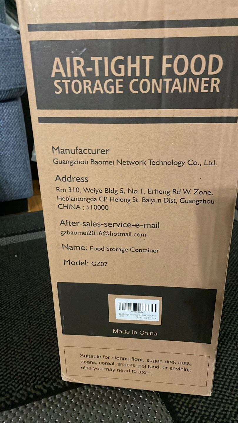 Selling a set of air-tight food storage containers! These are great for keeping your flour, sugar, rice, nuts, beans, cereal, pet food, or anything else you may need to store fresh. Model number is GZ07