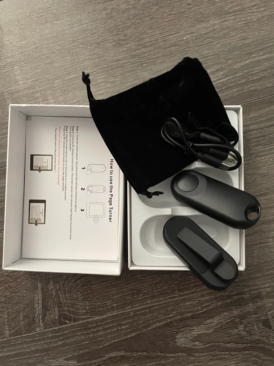 Selling an Oresoc RF Remote Control Page Turner for Kindle Paperwhite. It comes with the box, a clip, a charging cable, and a carrying bag. Perfect for hands-free reading! A page-turner is often necessary for musicians who are playing complex pieces and prefer not to play from memory, or the page turn seems impossible to do if the musician wants to keep playing the piece cohesively without stopping