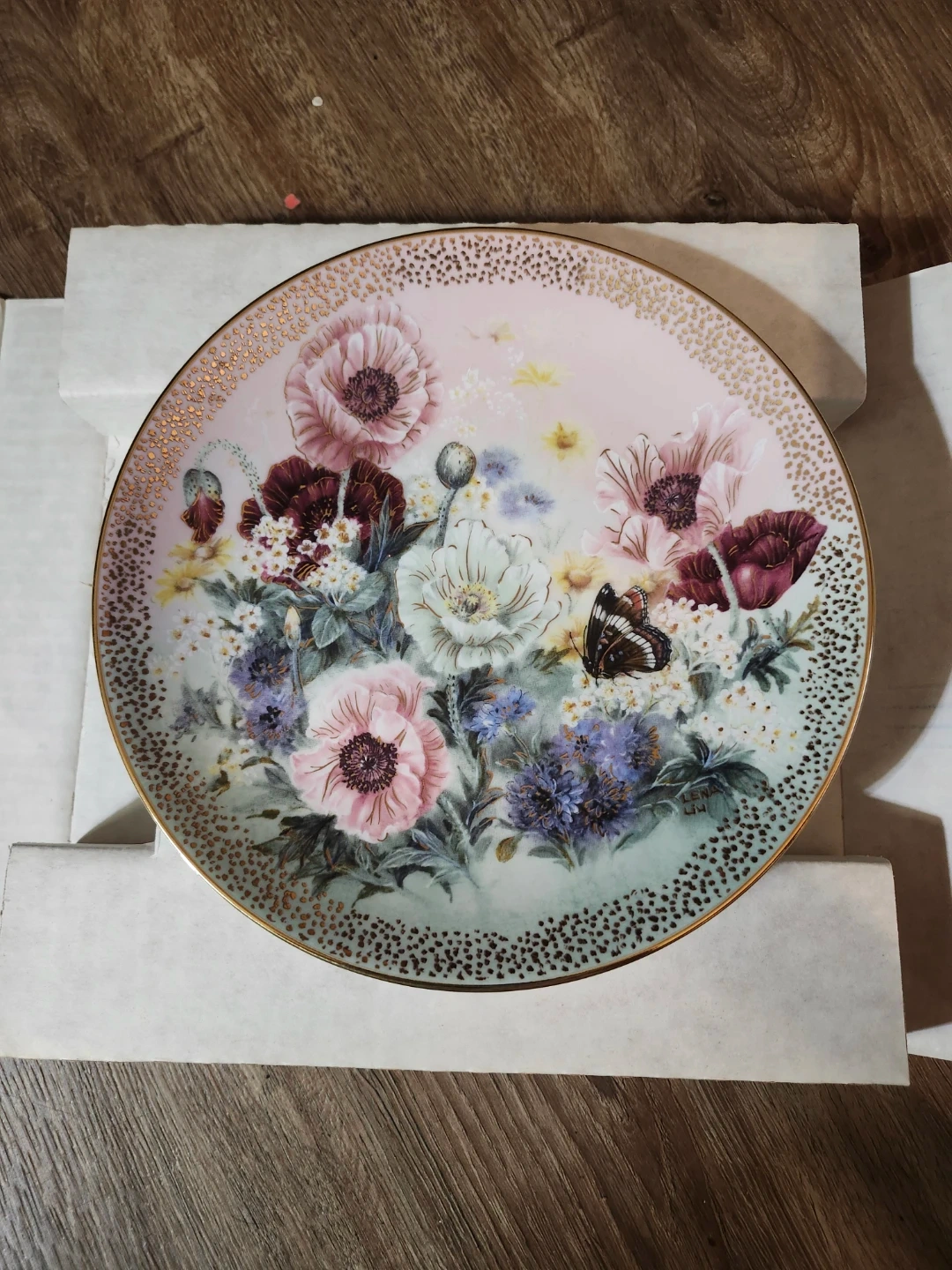 This is the third issue in the Symphony of Summering Beauty series, "Poppy Pastorale" collector plate by Lena Liu. Crafted from an original work, it's limited to an edition of 150 firing days. This decorative plate is not for food use.