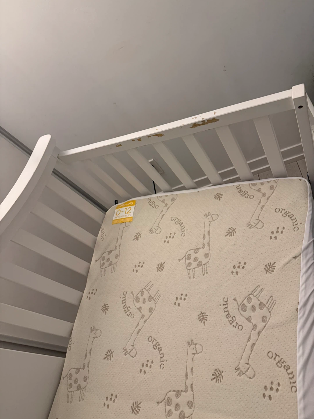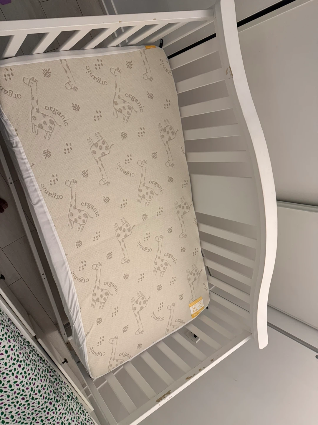 70Selling a gently used organic crib mattress, perfect for little ones aged 0-12 months! It features a cute giraffe pattern and is in good condition for your baby's comfort and safety