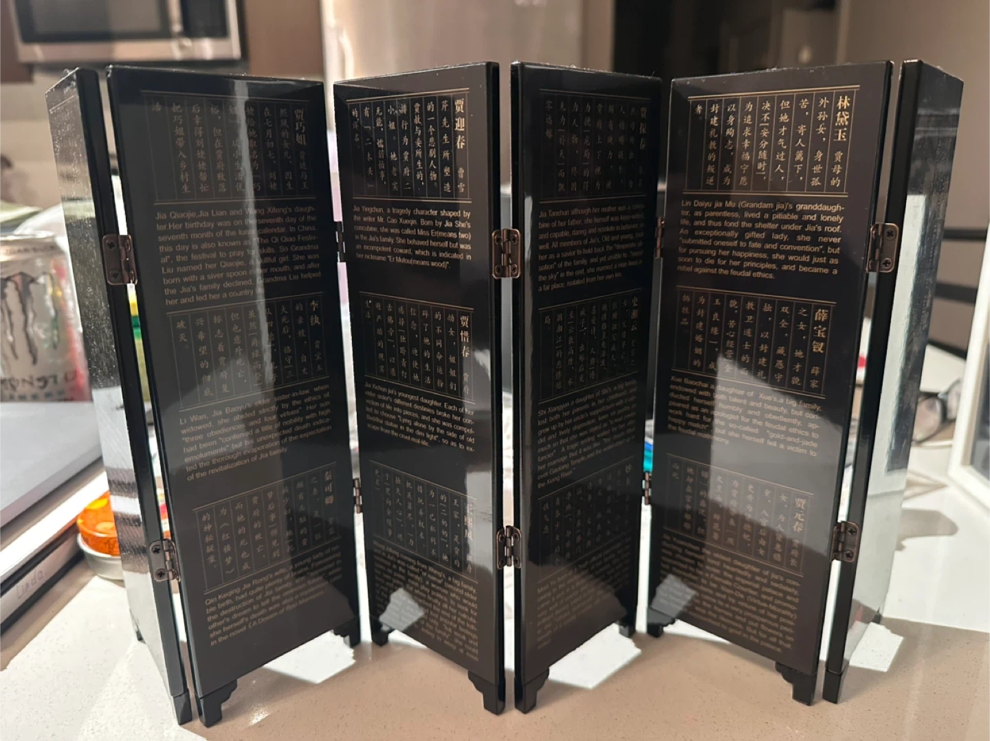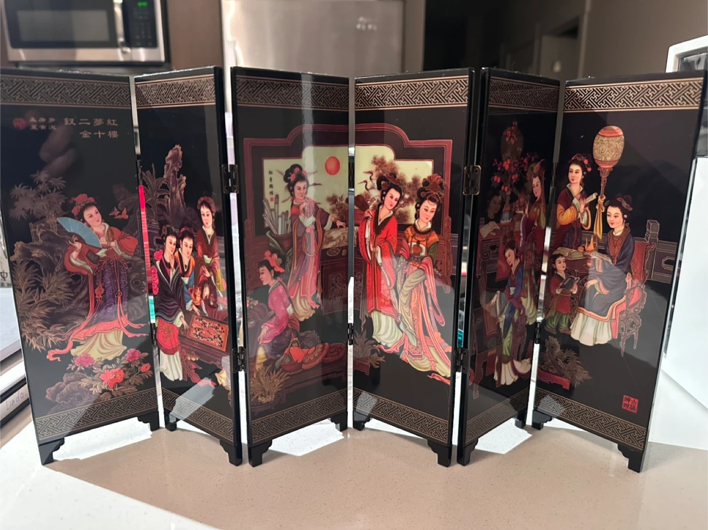 102Selling a beautiful oriental black lacquer folding mini screen! It's in great condition and would add a touch of elegance to any room