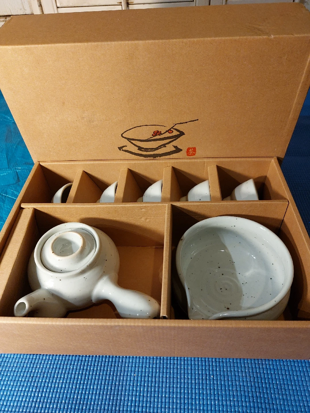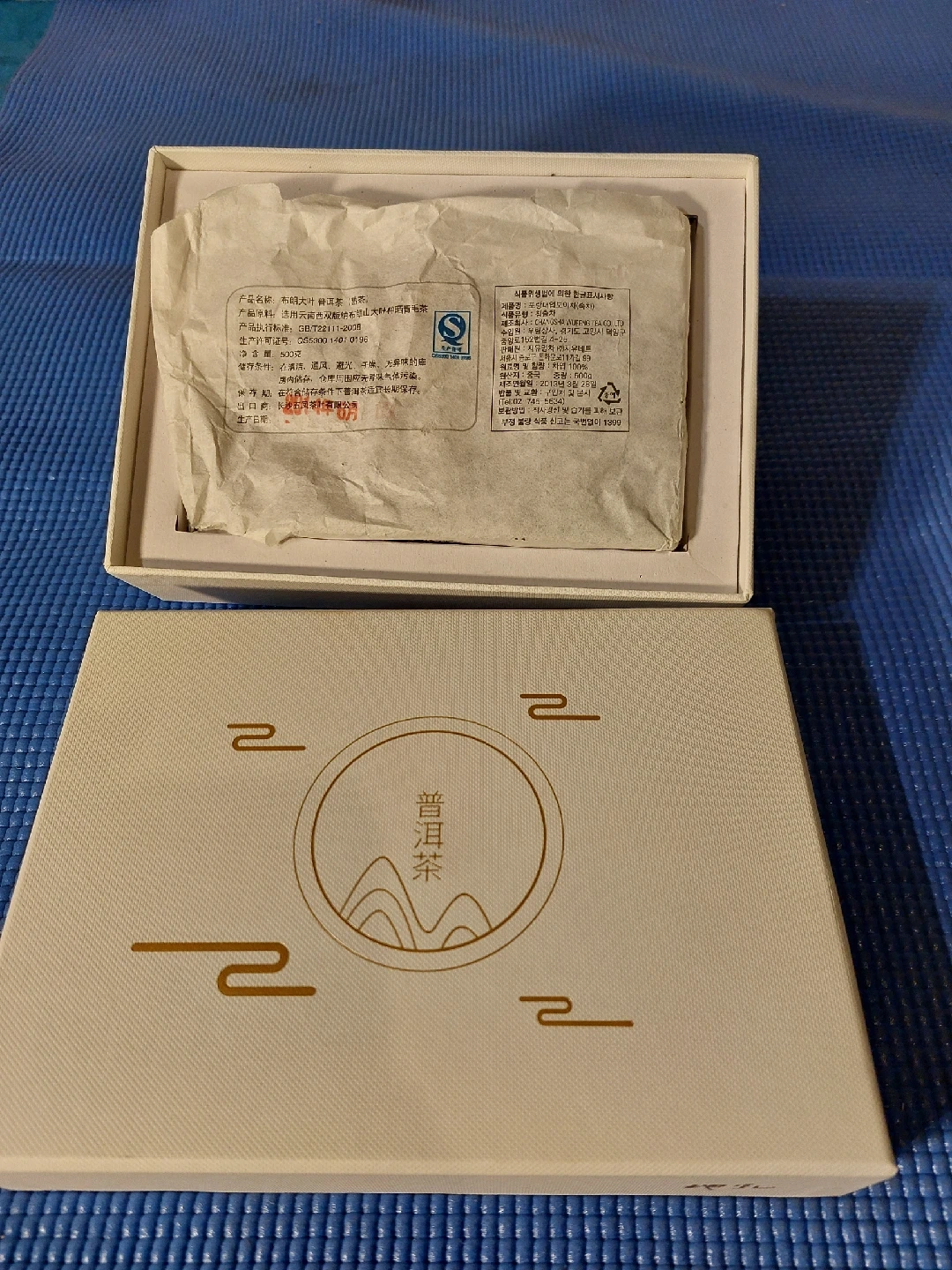 54Selling a lovely Oriental tea cup set that comes with original China Puer tea 500gram. The ripe Puer tea was produced in Yunnan, China in 2014. It's maker is Changsha Wufeng. The tea cup set for 5 peoples is made in Korea and comes in its original box, making it perfect for gifting or personal use