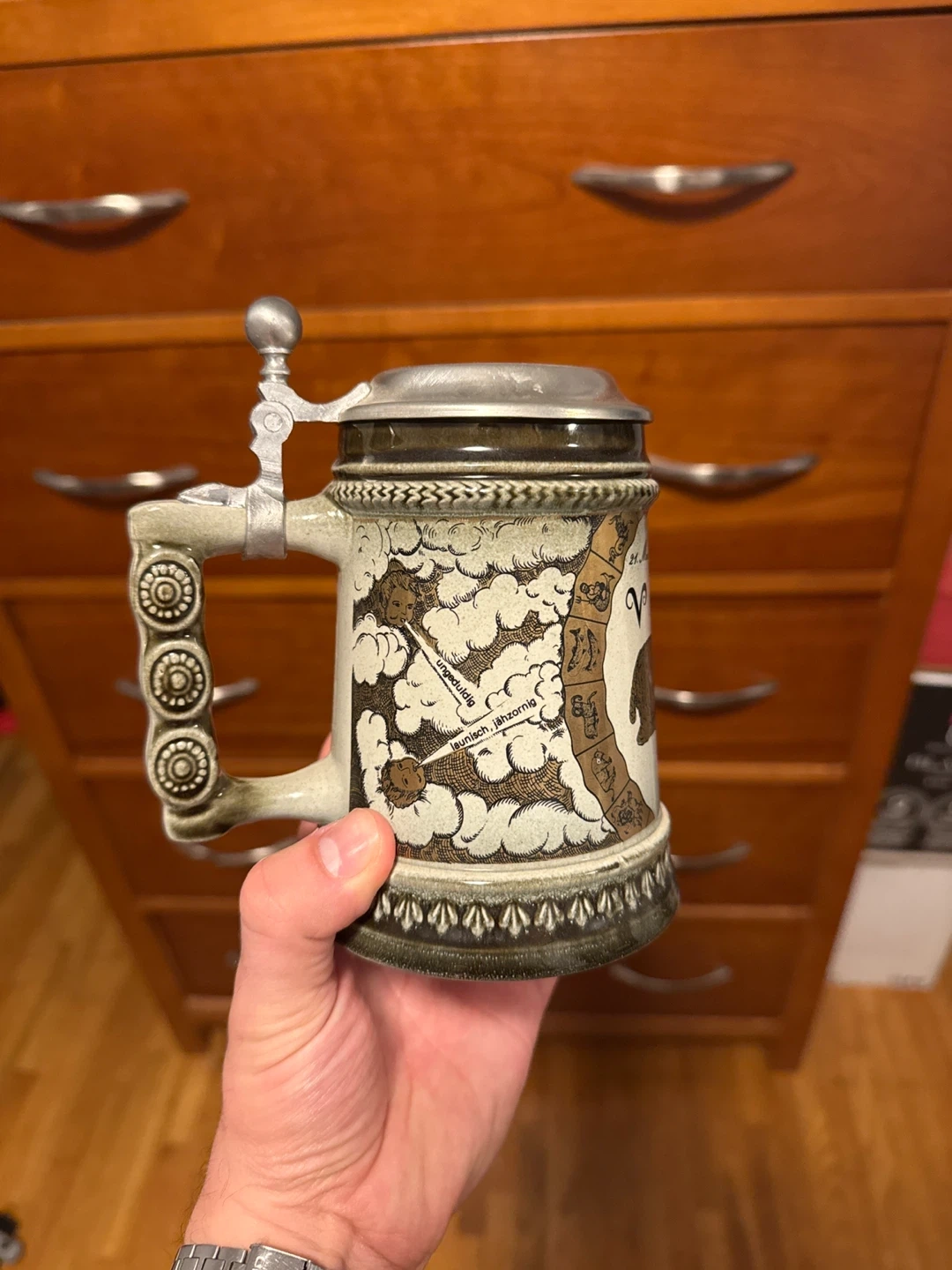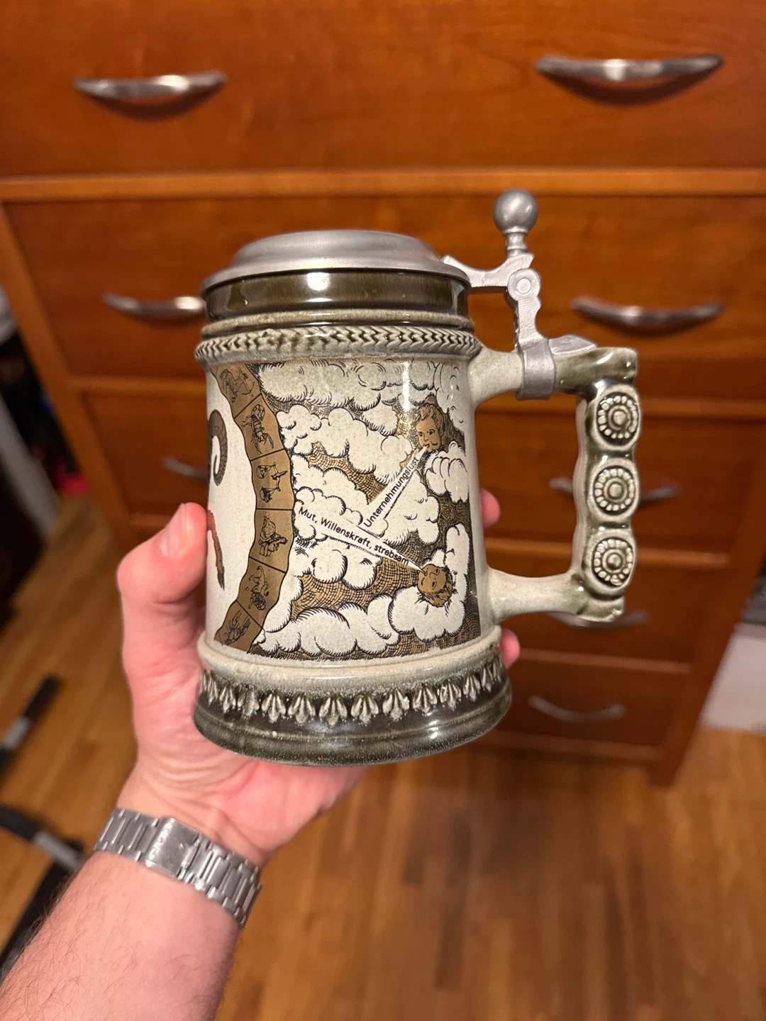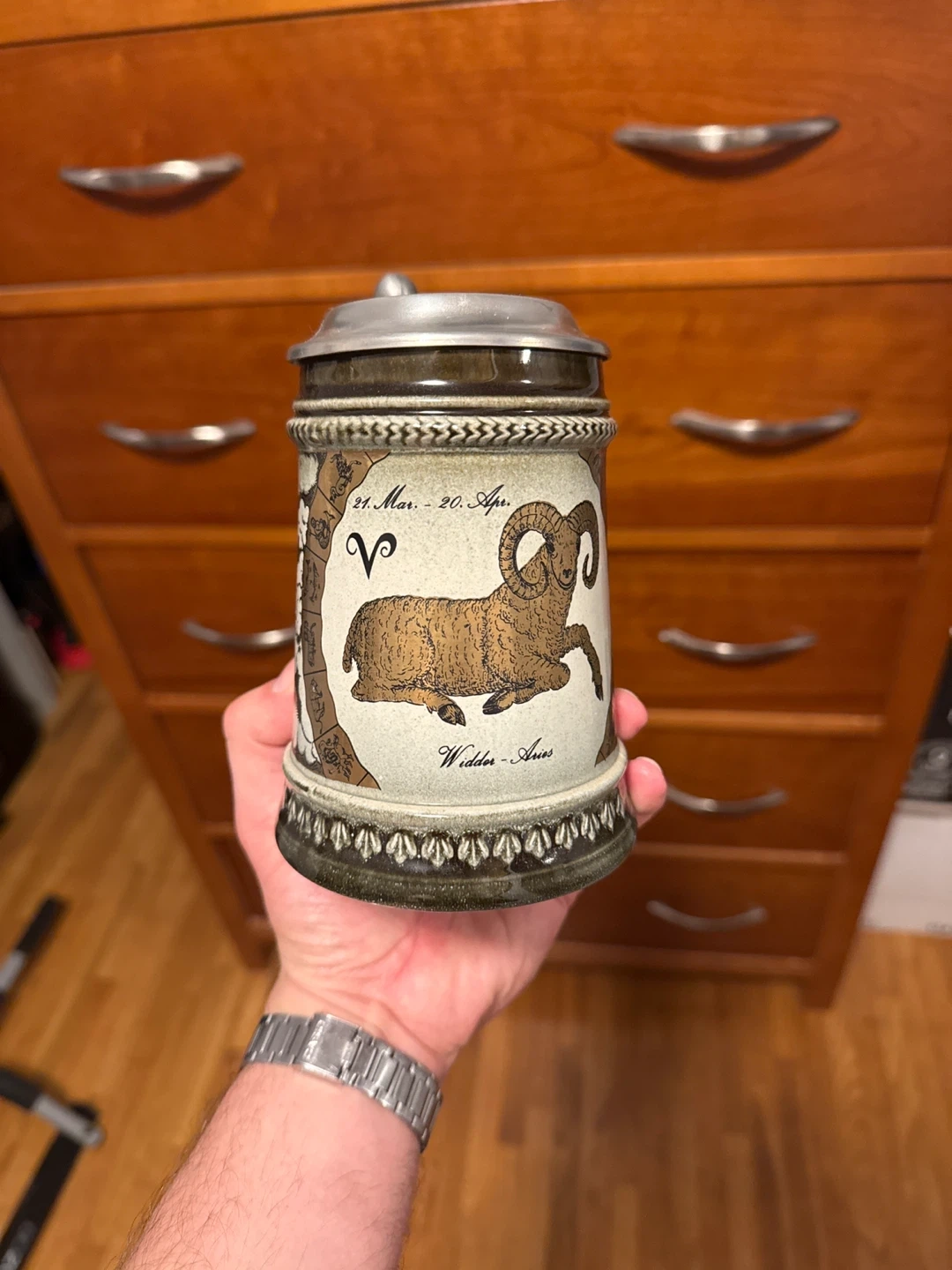 0Selling a vintage Original Gerzit Gerz beer stein from Germany. It features the Aries zodiac sign and has a unique design. A cool piece for collectors or anyone who enjoys traditional German beer steins