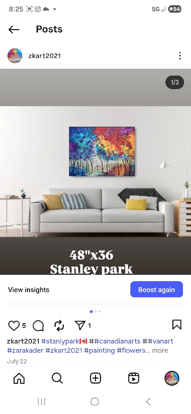 66original hand-painted painting by Canadian local artist Zara kader Stanley Park, sized at 48"x36" to view more of my artwork go to my Instagram zkart2021 Custom order painting available Abstract modern cubist landscape cityscape flowers
