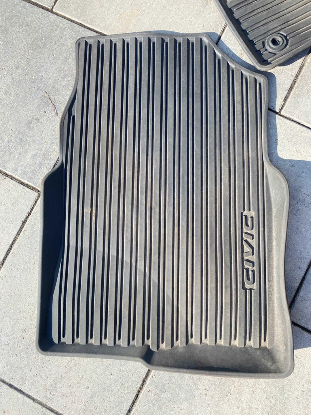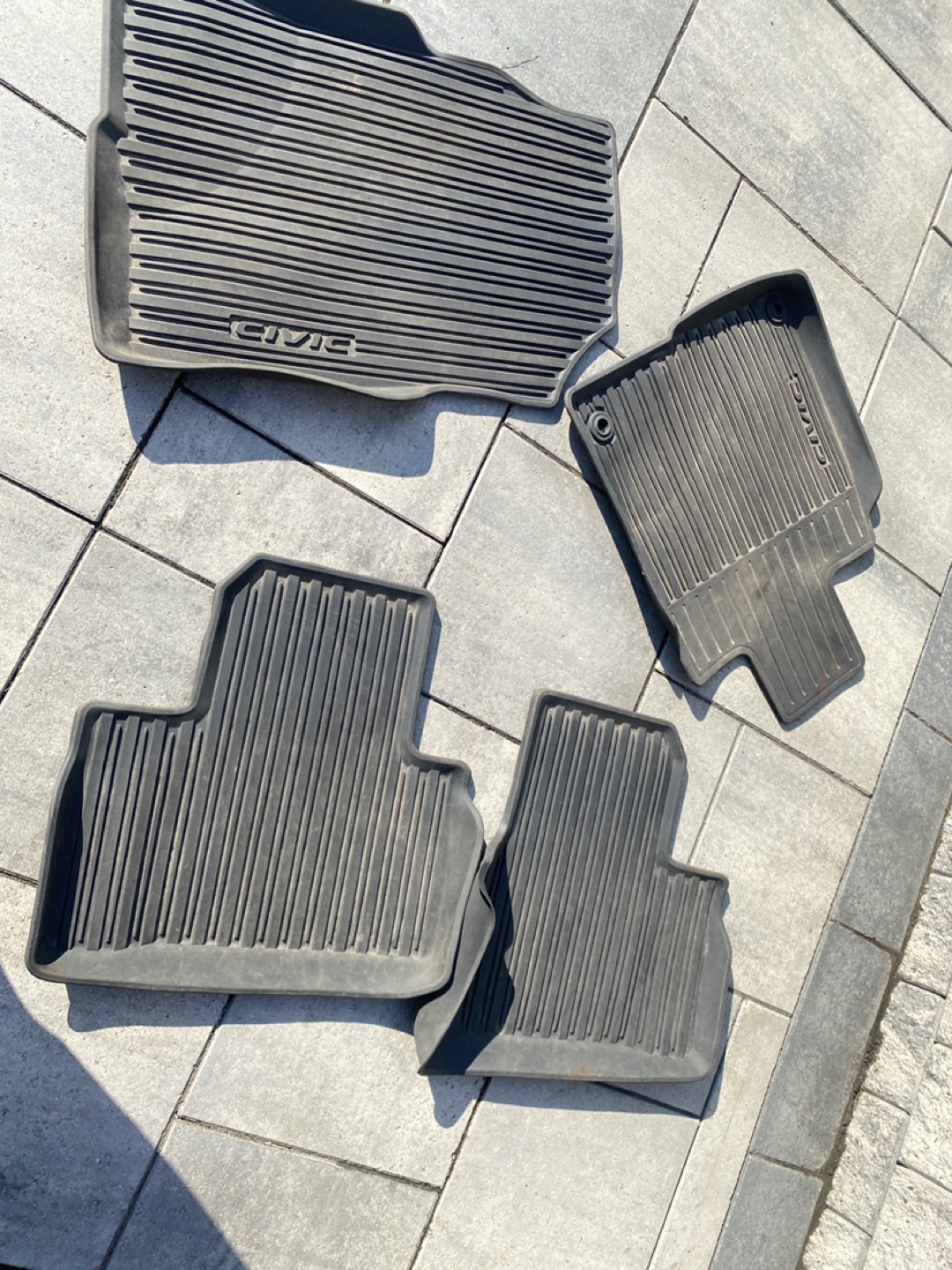 Selling a full set of winter floor mats for a Honda Civic. They're in good used condition and ready to keep your car clean! The mats are grey and have the 'Civic' logo on them. Please take a look at the photos to see the condition. Used for our car but we sold it so we’re looking to sell.