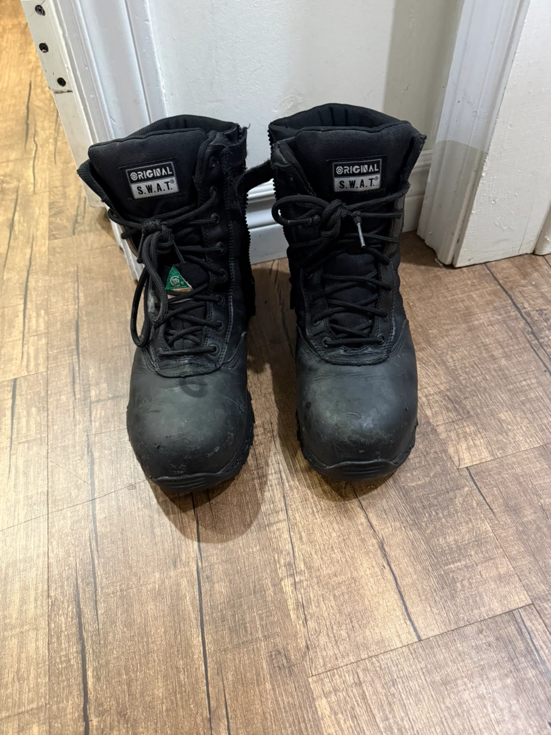 Selling a pair of Original S.W.A.T. tactical boots. They're black and look like they've seen some use, but still have plenty of life left in them! Great for work or outdoor activities