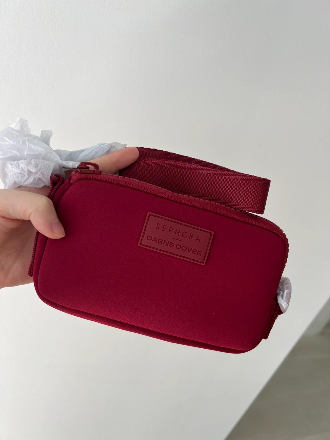 Brand New Go hands-free—carry your phone, cards, cash, keys + lip balm Fits all iPhones + most other phones REPREVE® Recycled Polyester + dust bag 100% vegan Size: 7.5" L x 1.5" W x 4.5" H Weight: 7 oz Crossbody strap length: 14" - 28" Perfect gift