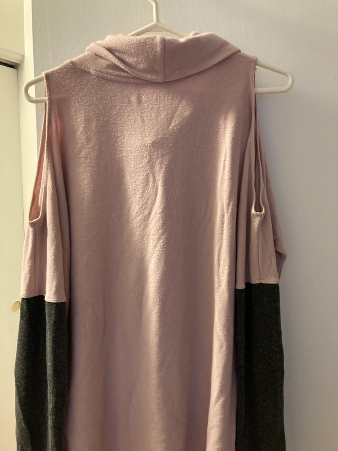 DKNY Sport Womens Pink and Grey Cold Shoulder Cowl Neck Sweater