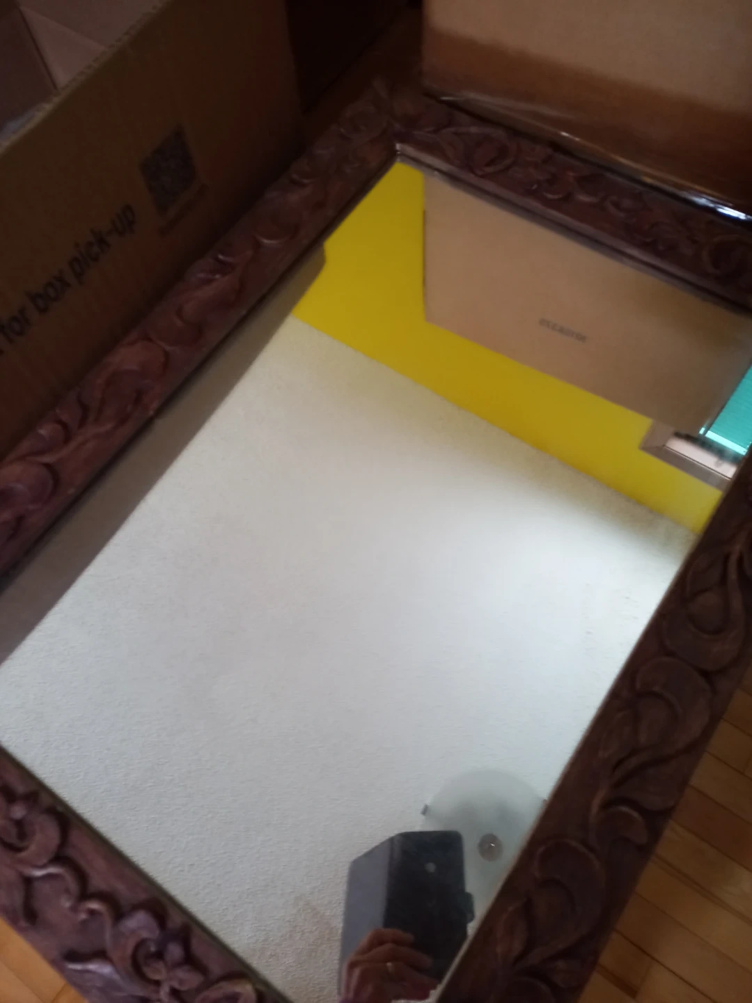 57Selling an ornate framed mirror! The frame has a detailed, carved design in a dark wood tone. It's ready to add a touch of elegance to your space. Pick up in Martingrove Dr NE.