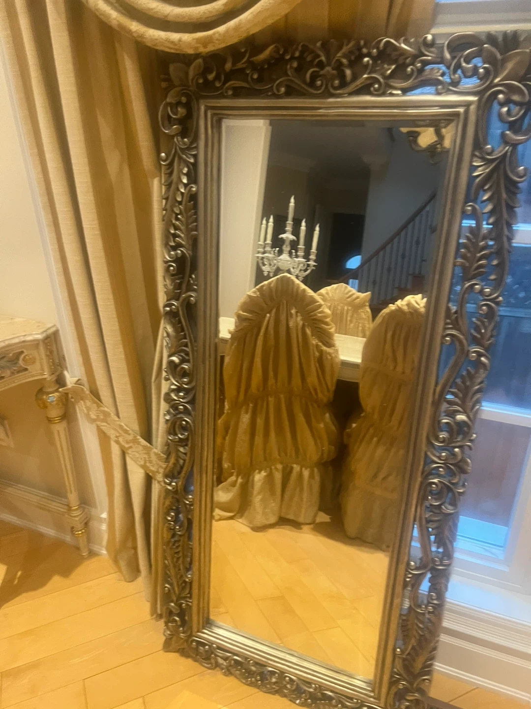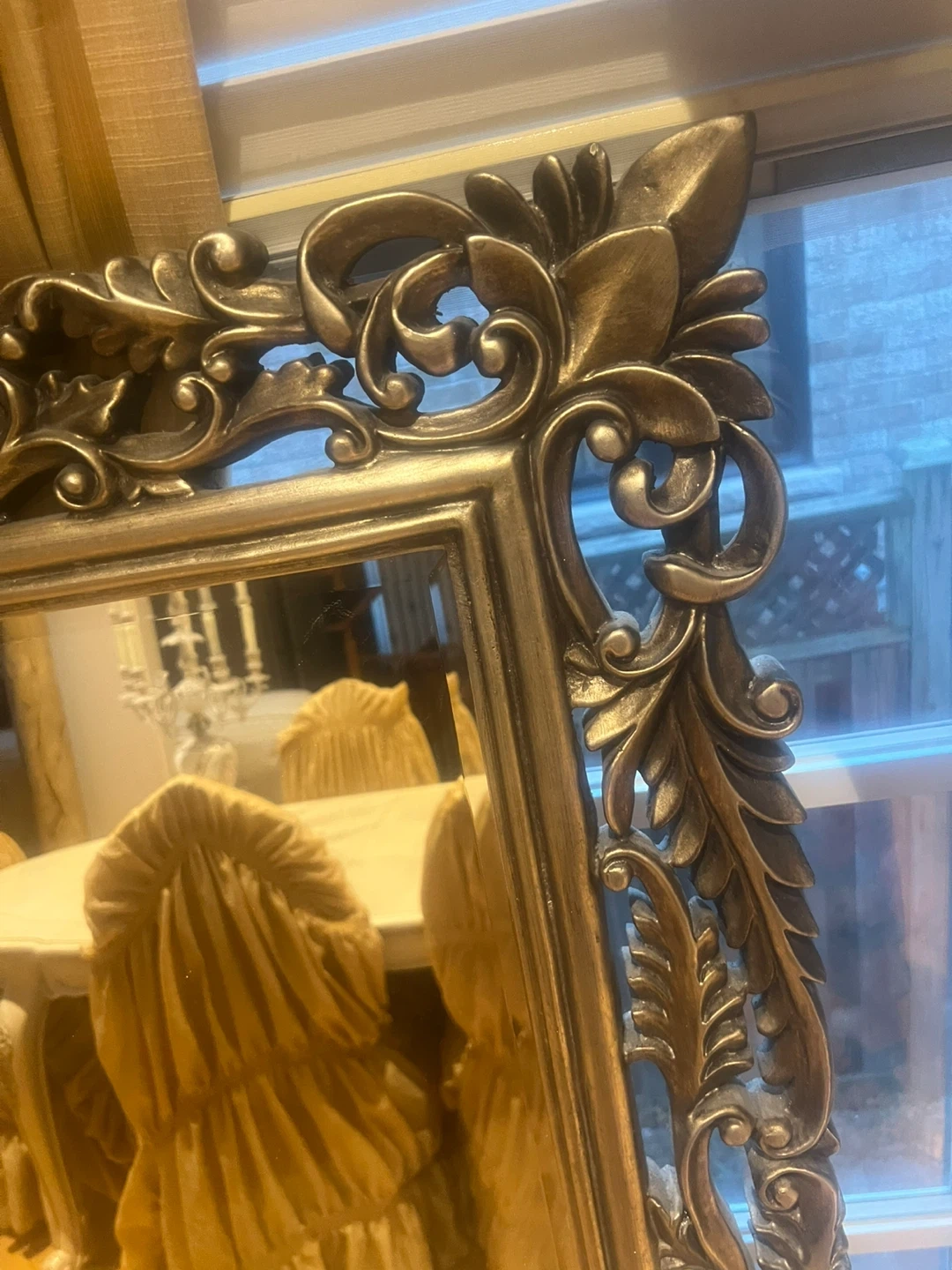Selling a beautiful ornate framed mirror. It would look great in any room! The frame has intricate detailing and a classic design.