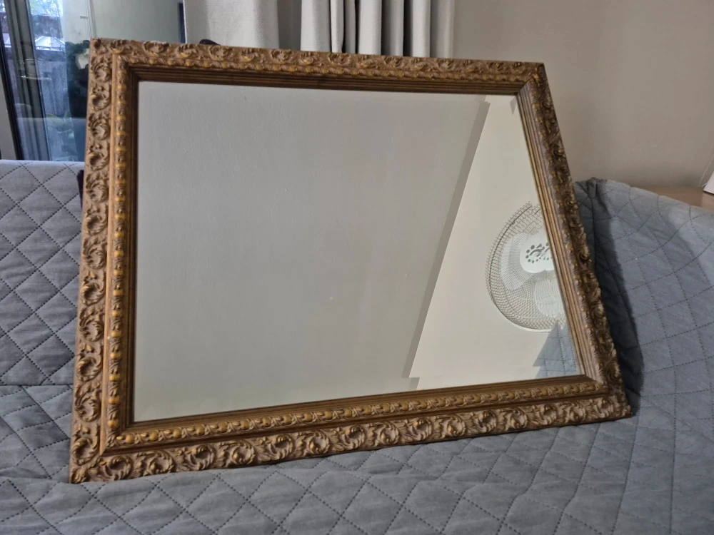 18Selling a beautiful ornate gold framed mirror! It would look great in any room and add a touch of elegance to your home decor. The frame has intricate detailing, giving it a unique and stylish look