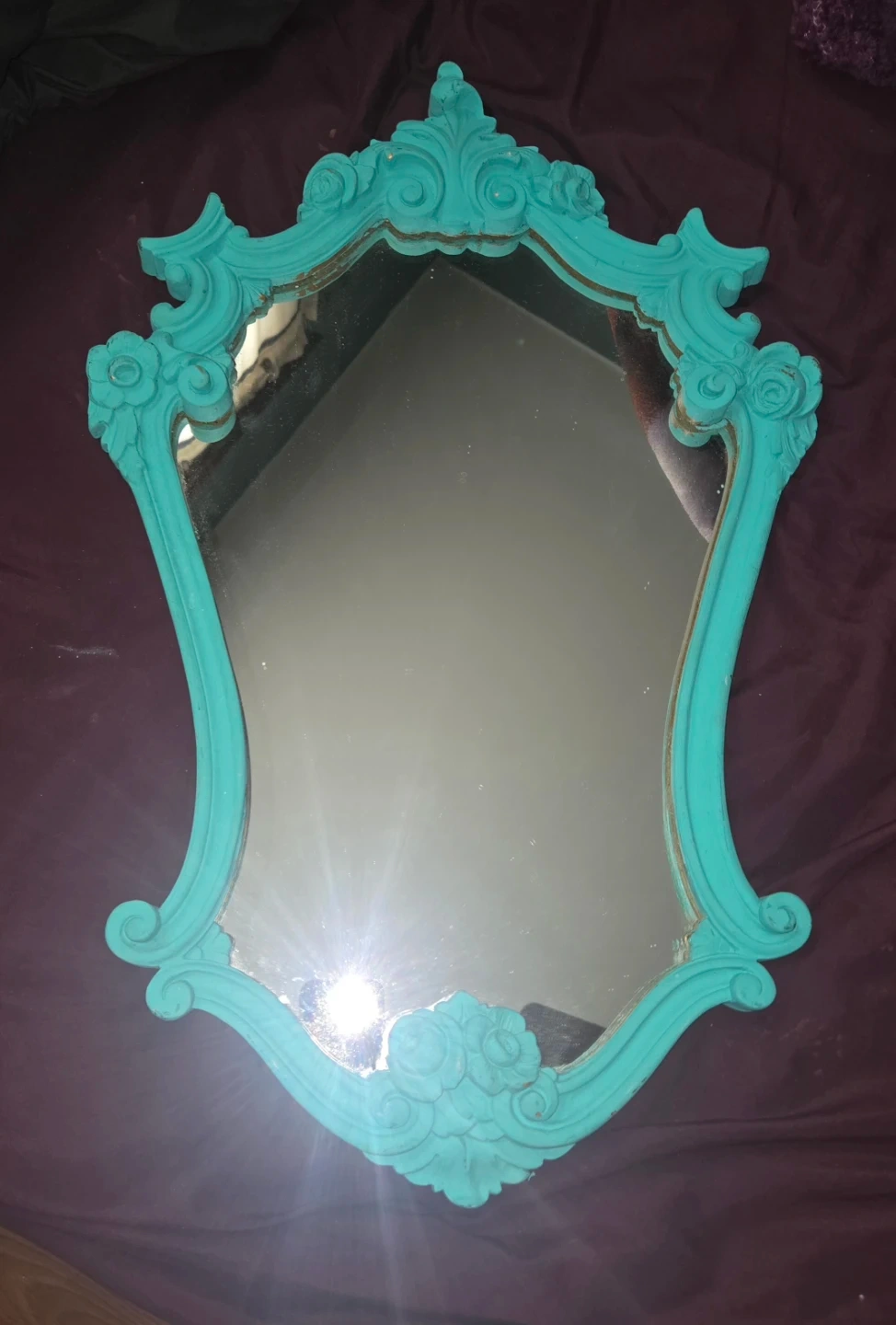 60Selling a cute turquoise framed mirror! It has a unique ornate design with floral details. Would look great in a bedroom or entryway!