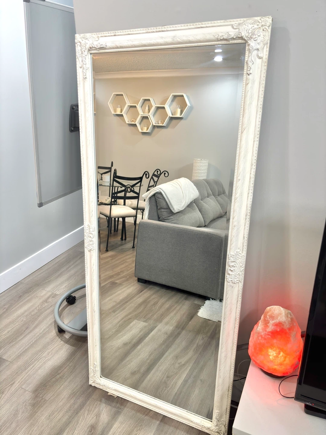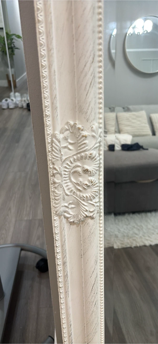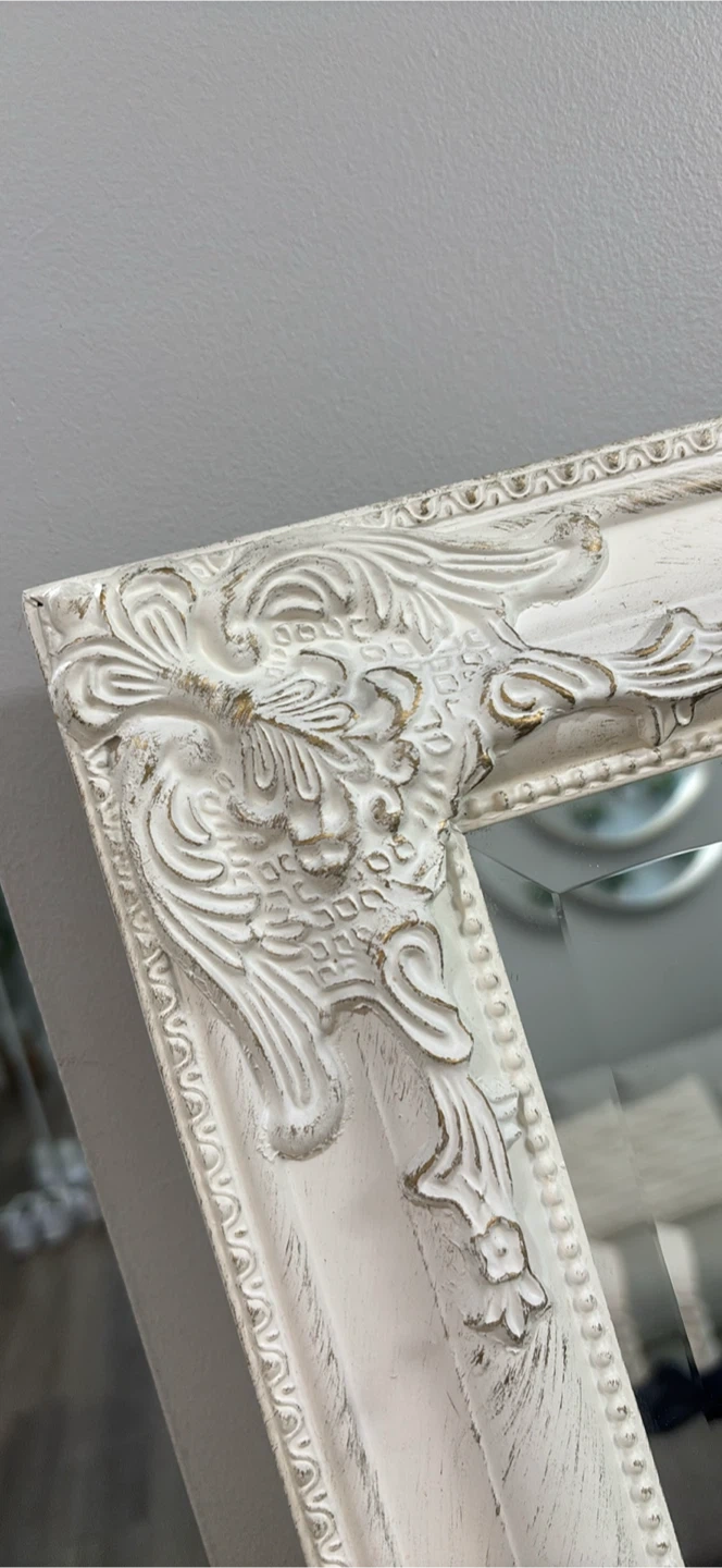 15Selling a lovely ornate framed mirror. It's in great condition and would add a touch of elegance to any room. The frame is a beautiful white colour with detailed carvings. Perfect for adding a bit of charm to your home!