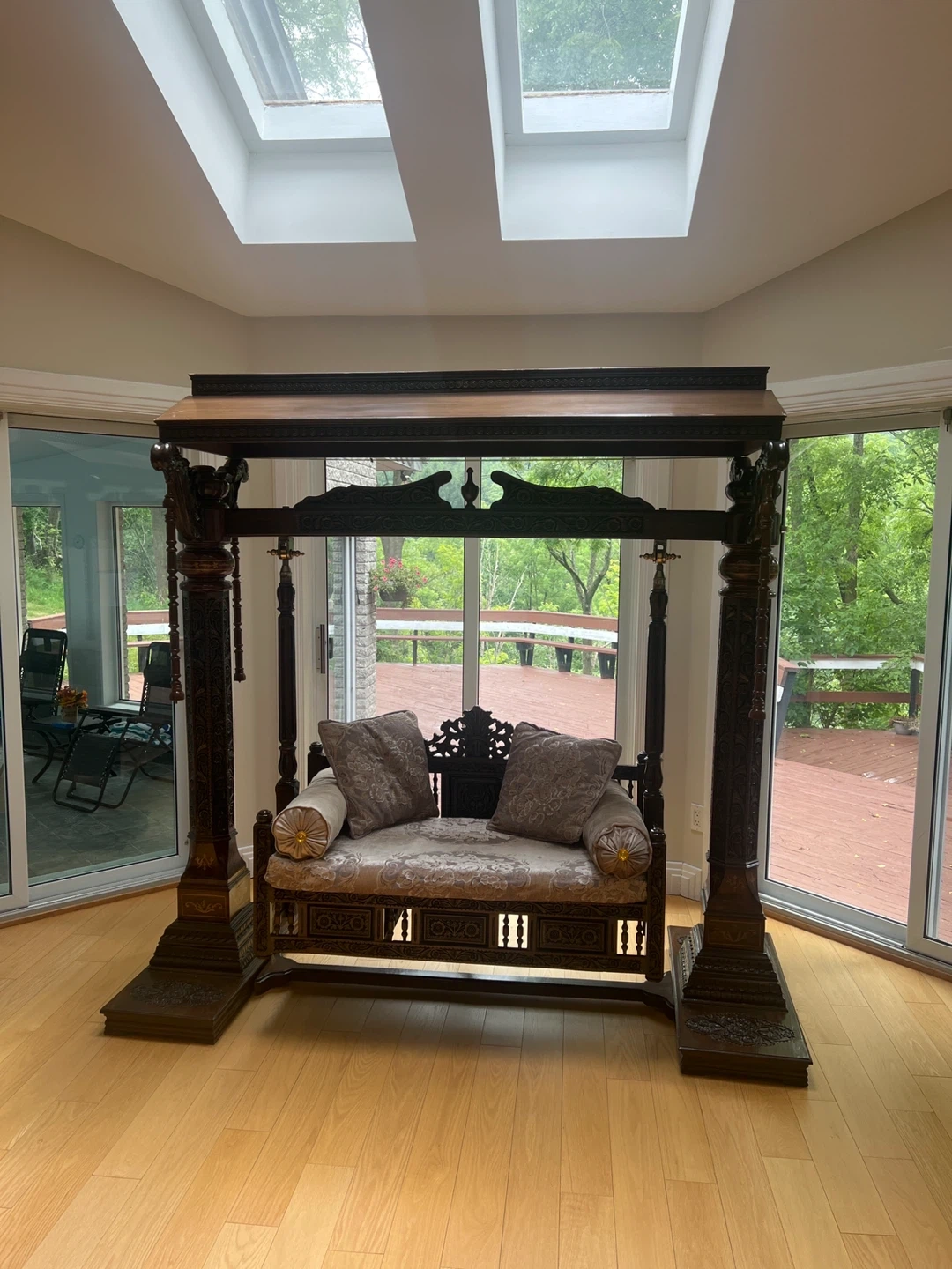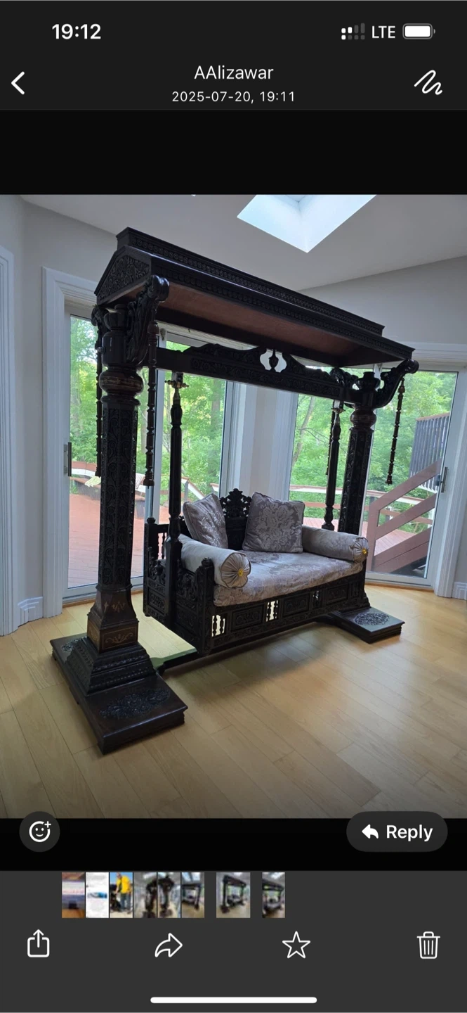 10Selling a beautiful, ornate wooden indoor swing. It's a real statement piece and adds a unique touch to any room. The craftsmanship is stunning, with intricate carvings and a comfortable seating area. Perfect for relaxing and enjoying the indoors!